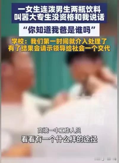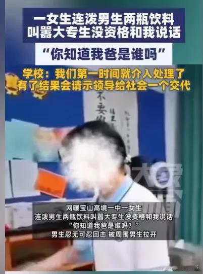 上海某高中那位女生现在估计肠子都悔青了!她后悔的不是在同学面前泼饮料,也不是