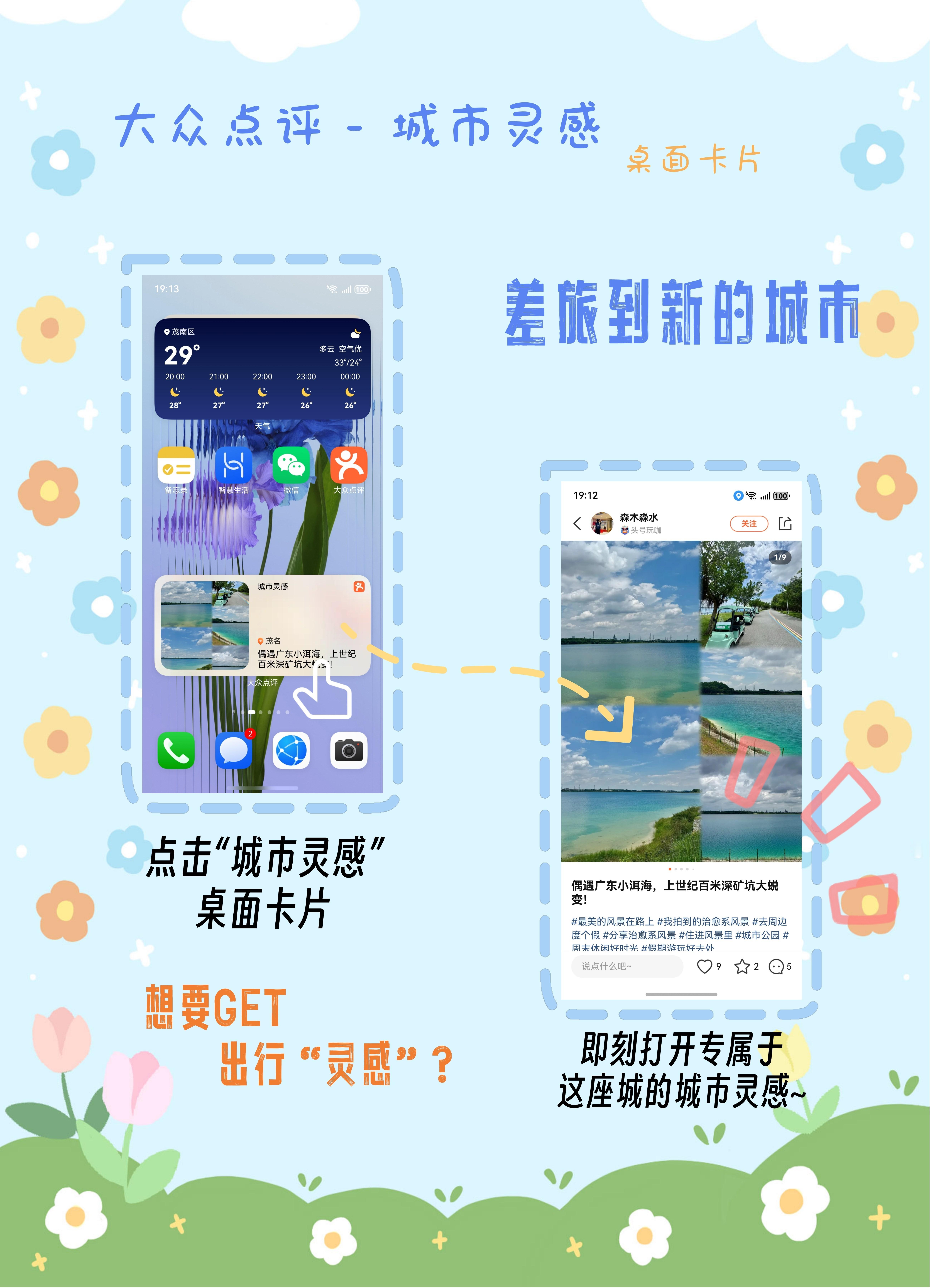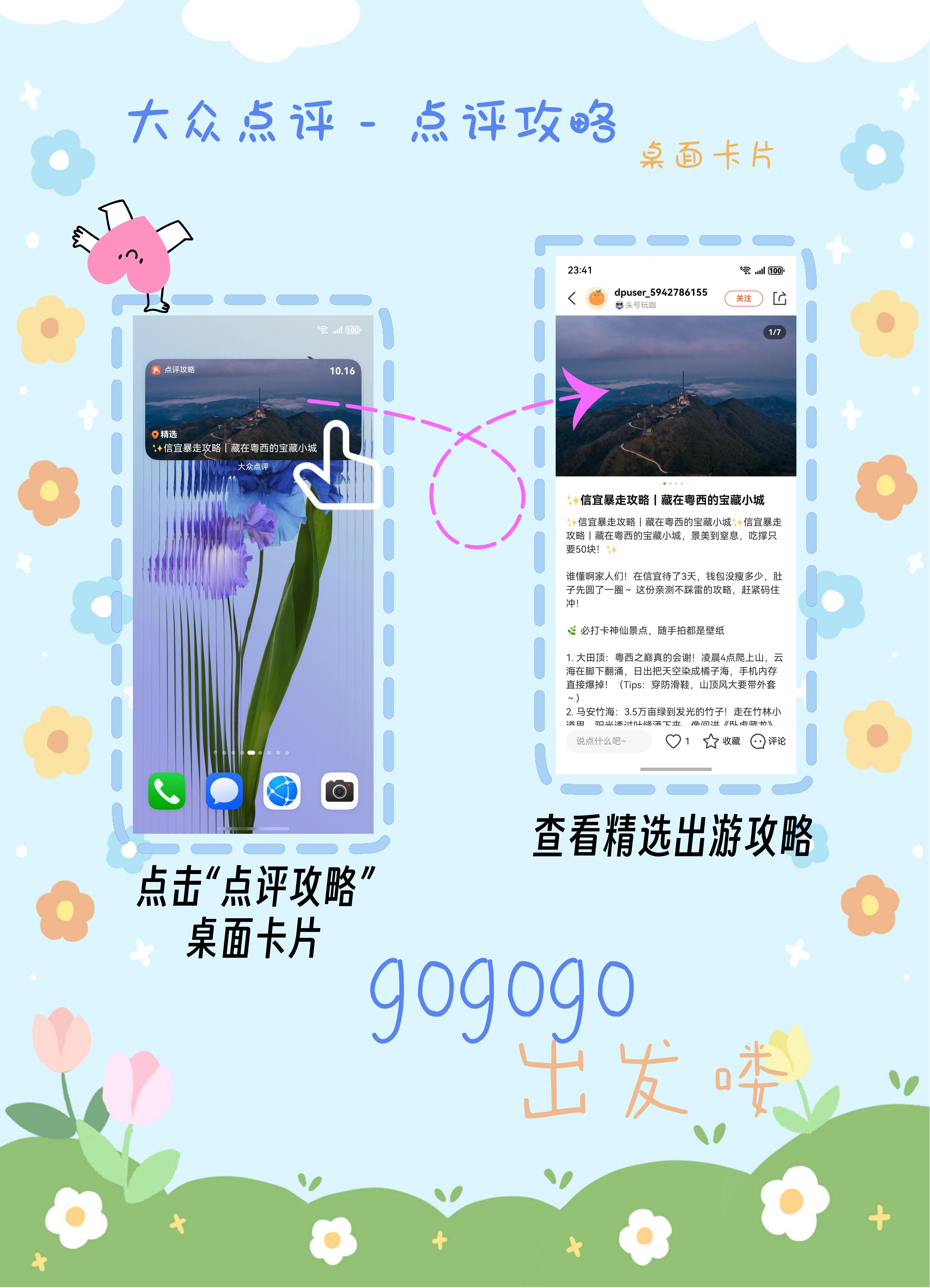 大众点评在鸿蒙5上线桌面卡片了啦!最近刚好一直在各地出差,突然发现这个桌面卡片还挺好用的。