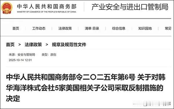 最近漂亮政坛乱了,他们上蹿下跳,不知道该怎么办了! 只不过成了我们得大笑话!这不美国又来了,它们“帮腔”韩国,双标戏码太难看! 10月14日,中国商务部出手制裁韩华海洋5家美国子公司,禁止境内组织、个人与其交易 。原因很明确,这家韩企帮美国搞针对中国造船业的301调查,还递报告建议加征中国港口费,典型的“吃中国稀土、砸中国饭碗”。 没想到当地时间10月17日,美国国务院发言人倒打一耙,声称中方在“胁迫”其亚洲盟友,想破坏美韩合作。这话说得实在荒唐,真正搞胁迫的是美国——用关税逼韩国投1500亿美元,把韩华绑上亚太军事战车。 中方反制有《反外国制裁法》撑腰,精准打在产业链七寸上,韩华一天就蒸发4.7亿美元市值。美国除了嘴炮啥也没给,这“保护”谁信?双标戏码该收场了。 带定位晒今日生活 我的今日状态:💰期待暴富 我这里的天气:🌤️多云