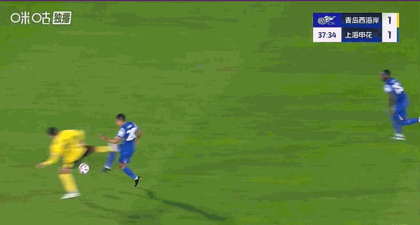 西海岸减员!队长孙捷侧面踹倒于汉超,裁判一开始给了张黄牌,经VAR提醒,观看回放之后,取消黄牌,直接给了红牌。
