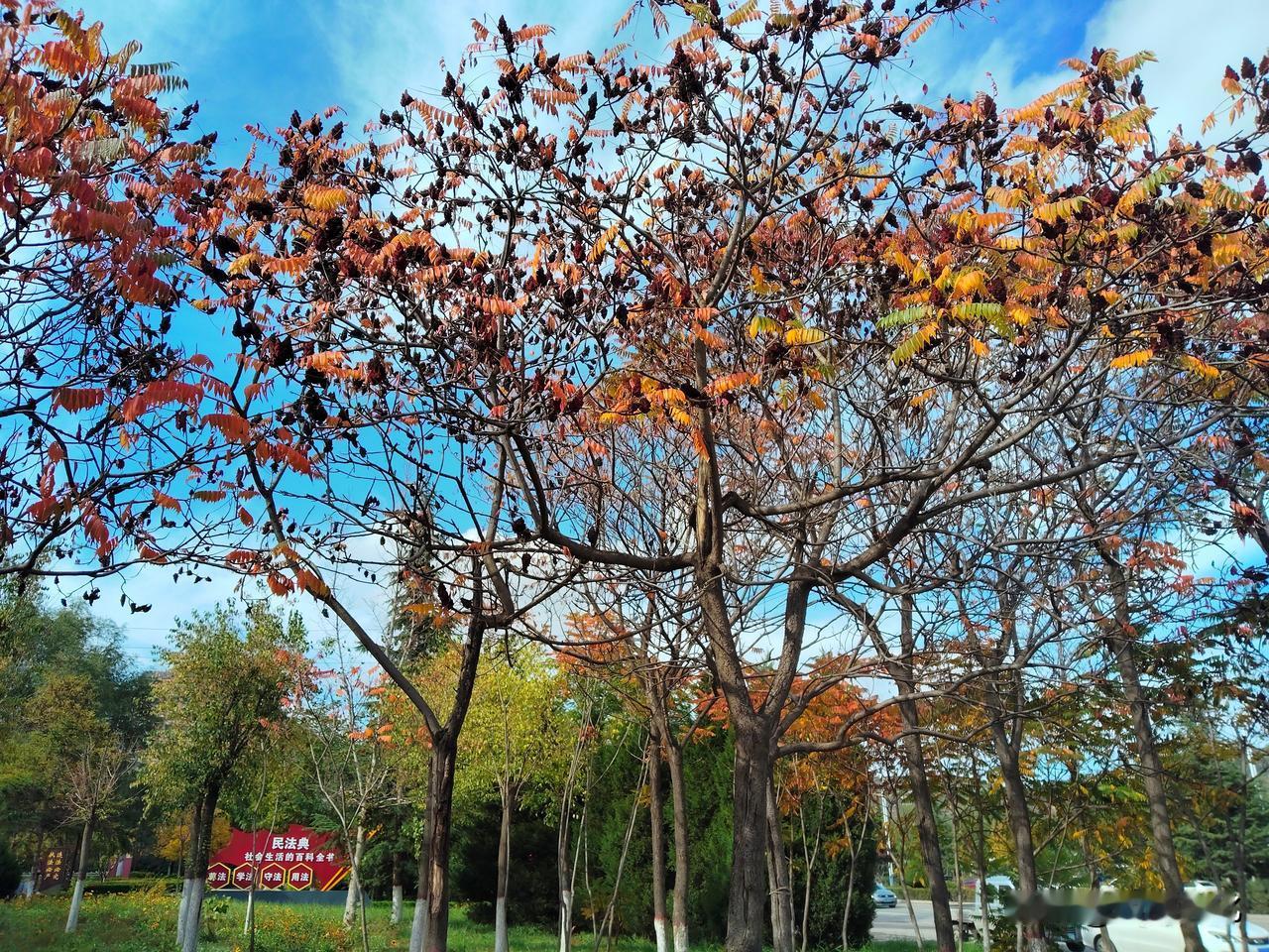 城中秋色 山中秋叶已落,城中秋色正浓。透过树缝,天高云淡,秋天的美,并不亚于秋