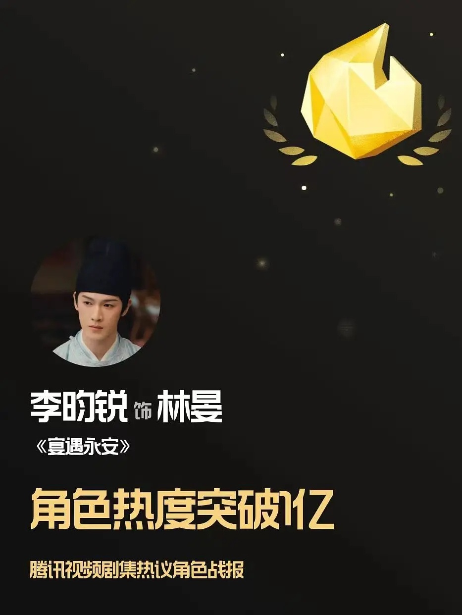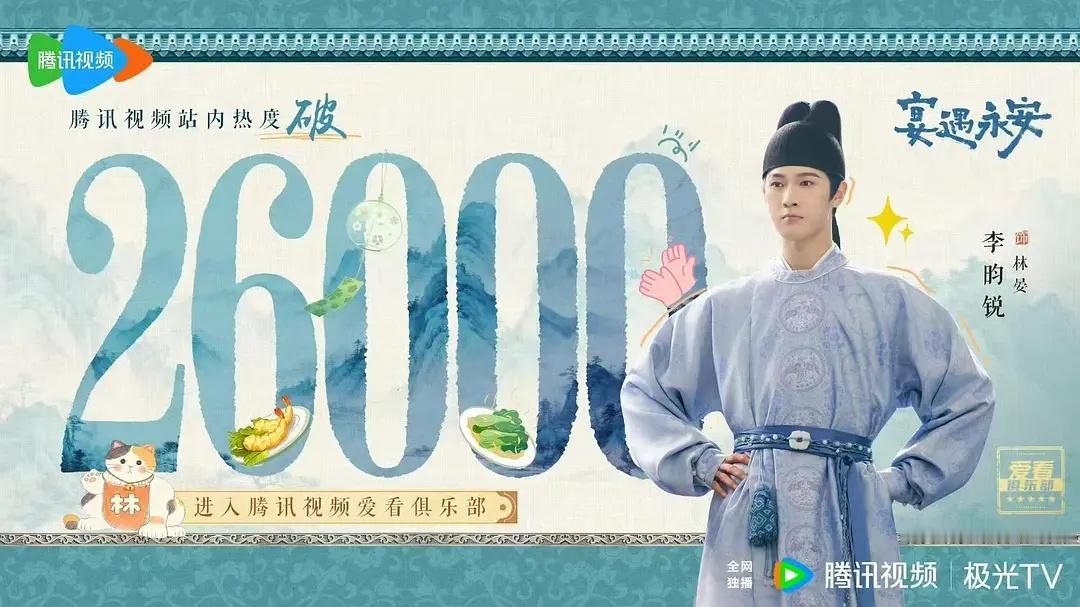 李昀锐林宴角色热度破亿,宴遇永安热度突破26000,稳稳爬升[送花花]