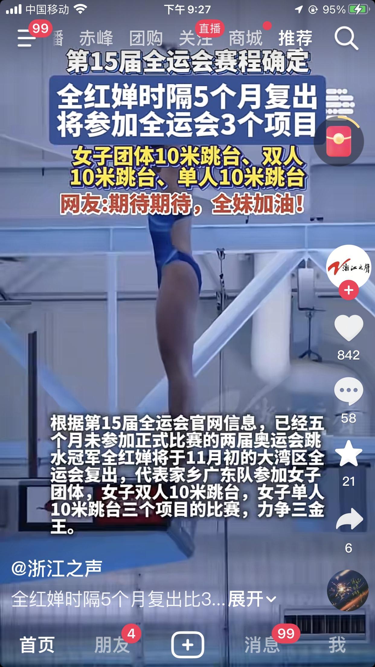 时隔半年全红婵在十五运复出跳水,我也将时隔半年复出看跳水[比心] 广东队教练说全红婵已恢复到巅峰状态,十五运将参加女团,女子双人十米跳台,女子单人十米跳台。 期待婵宝都夺冠