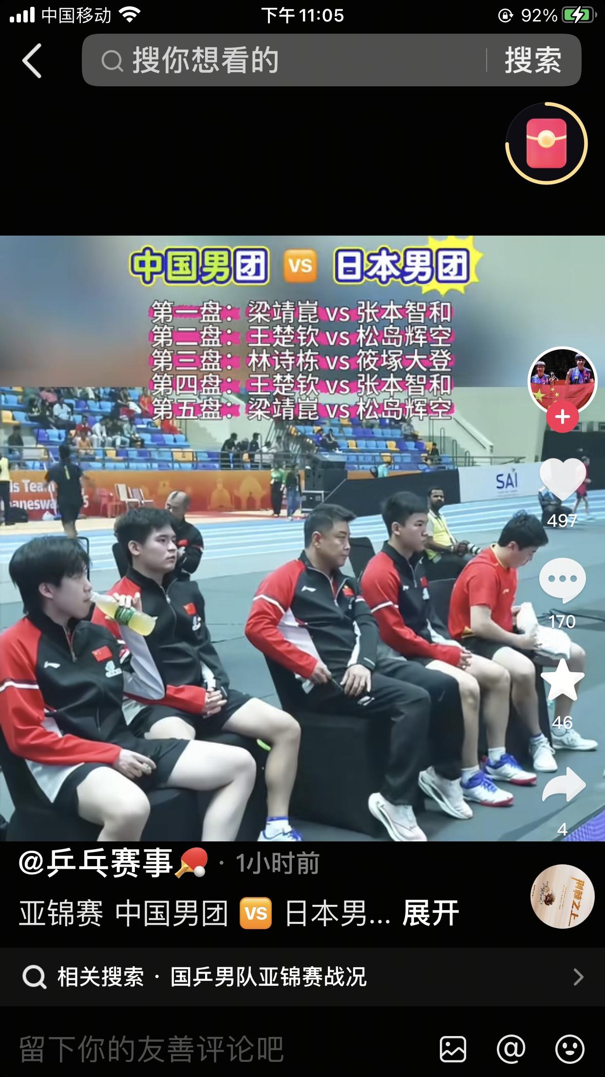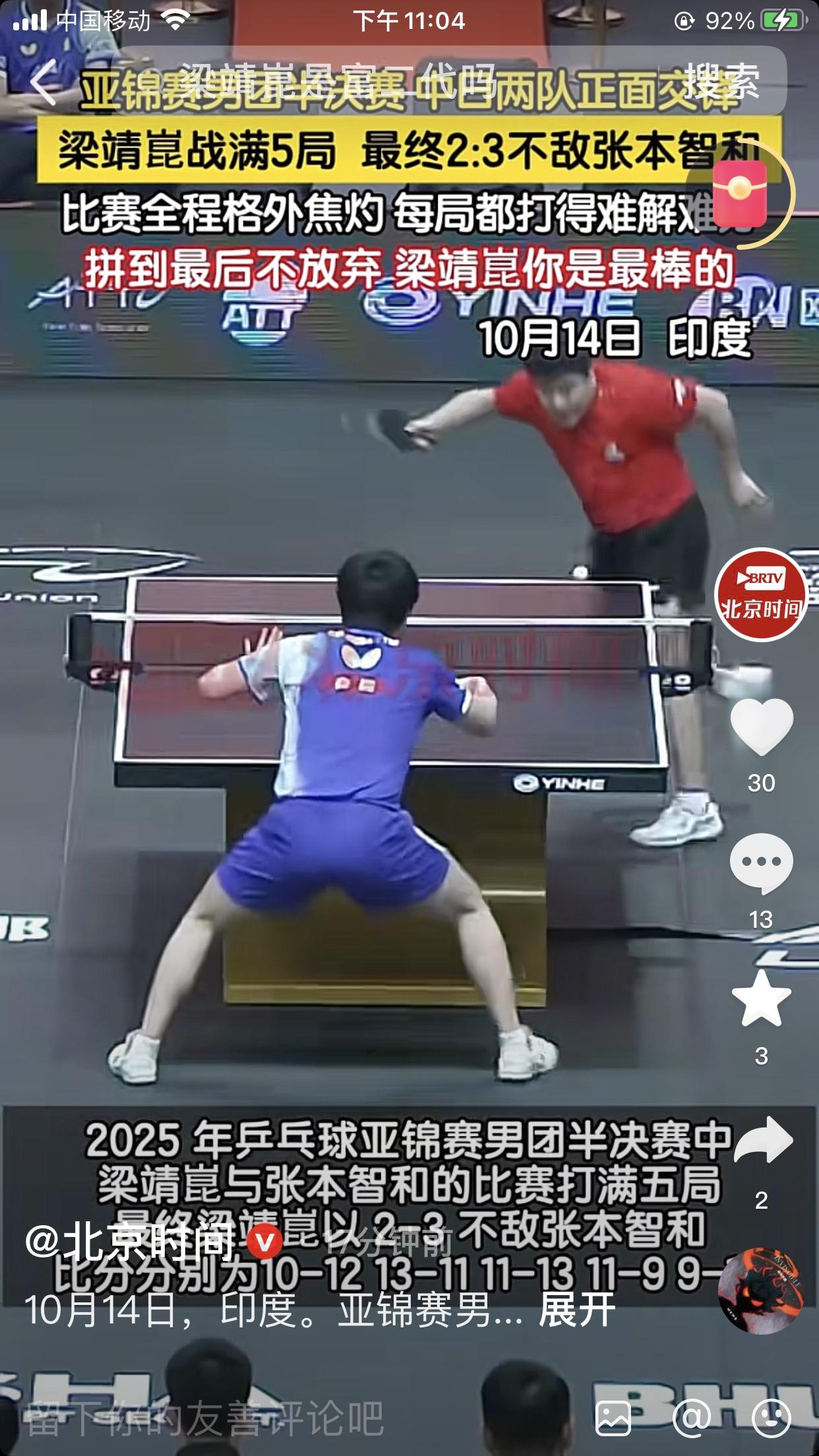 正在进行的印度亚锦赛男乒0:2落后日本。 我都不敢看了,大胖输了张本智和,大头也