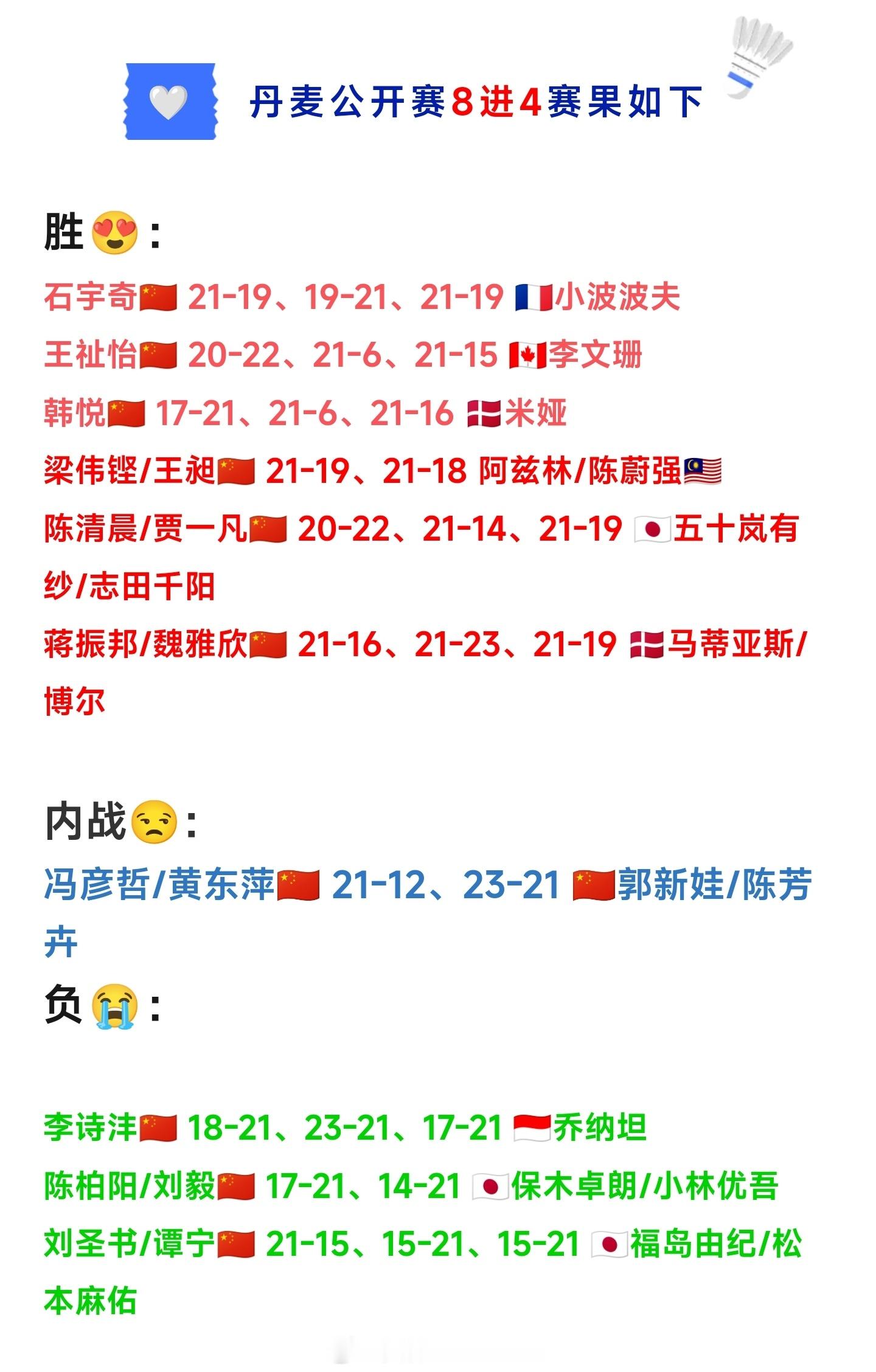早安🌞(亦是晚安)——丹麦🇩🇰公开赛(8进4)完整赛果(图1)|半决赛赛程(图2)今日15:00开赛(终于不用熬夜啦!!!)2025年丹麦羽毛球公开赛