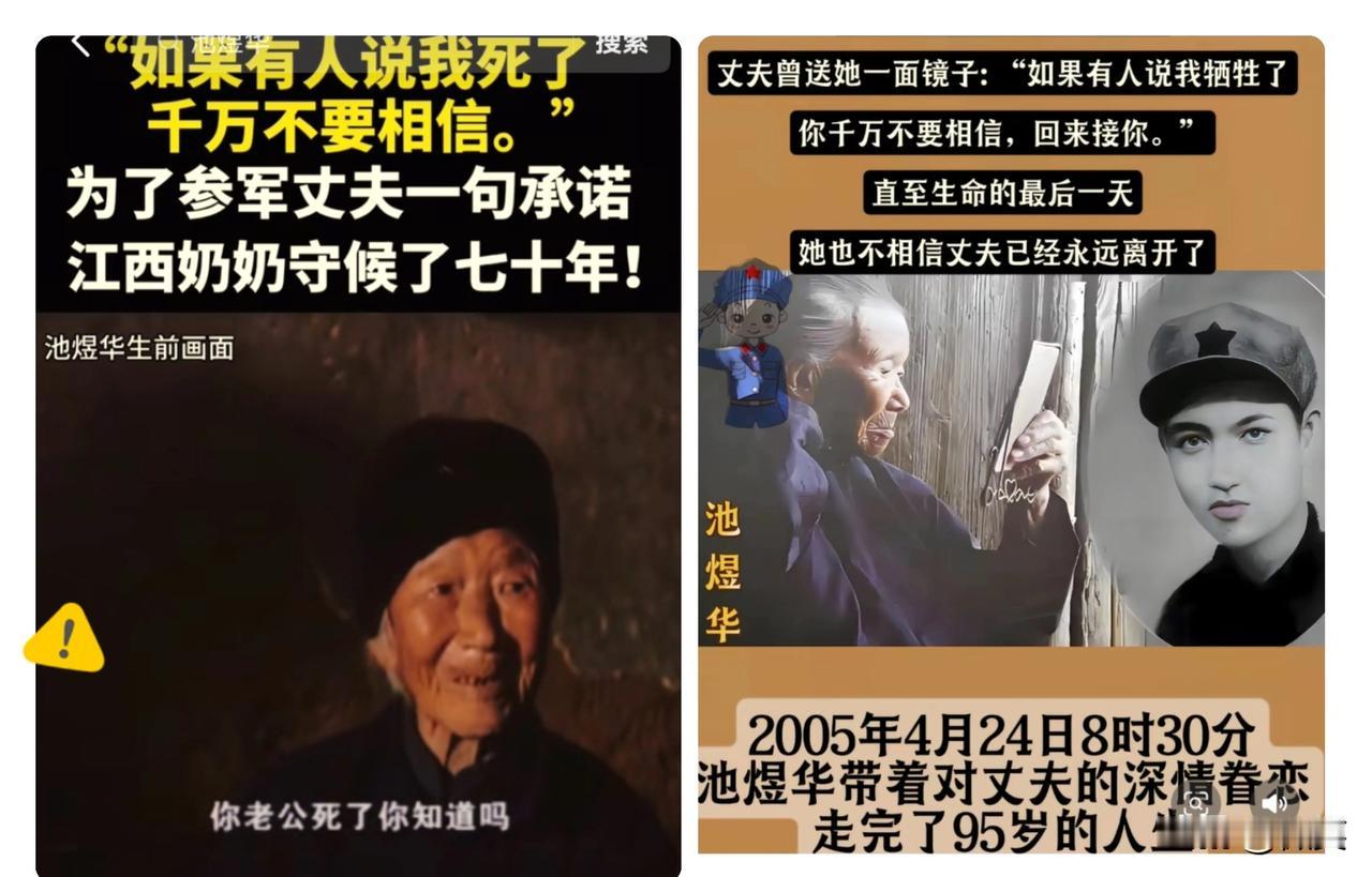江西一奶奶为等红军丈夫守了70年,最后也没等到。1928年新婚3天,丈夫李才莲离家闹革命,留了张纸条写“等着我,一定回”! 七十多年啊,空床每天都叠得整整齐齐,饭桌上永远摆两副碗筷,门框刻满了年轮就往老樟树上刻,那一道道印子,哪里是记年份,分明是把思念刻进了时光里。有人说她丈夫牺牲了,劝她登记烈士家属领抚恤金,她偏不信,固执得像块石头——她等的是活生生的人,不是一张证明。 直到98岁闭眼,她还念着“我去找你”,身上那件洗得发白的蓝布衫,陪着她守完了这辈子。其实哪是等一个人?是把一句承诺,活成了自己的一生。现在的我们,还能懂这种“信一辈子”的执着吗?如果你是她,会守着一句约定过一生吗?