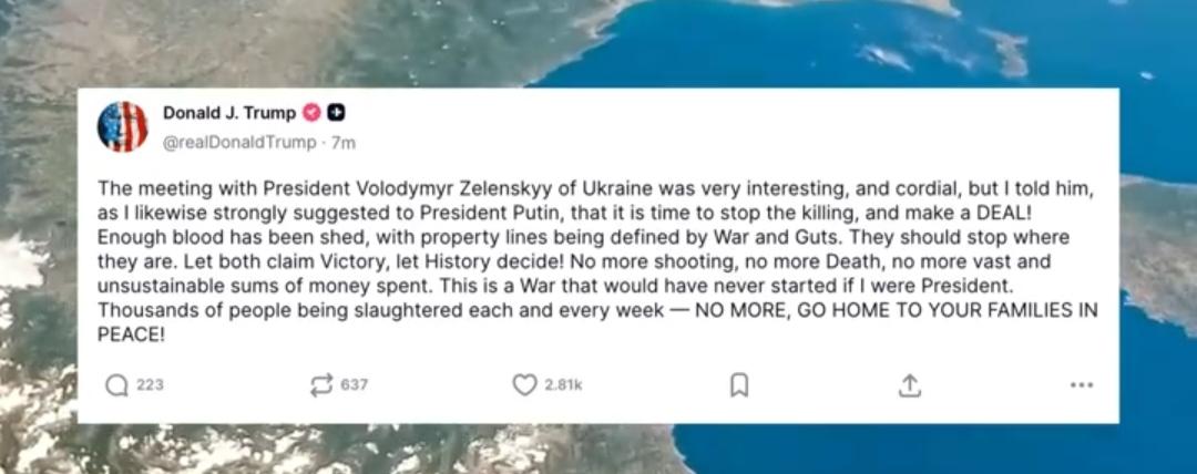 美国拒绝向乌克兰提供战斧导弹。 事后,特朗普表明态度,发信息表示,不能再杀戮了,