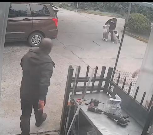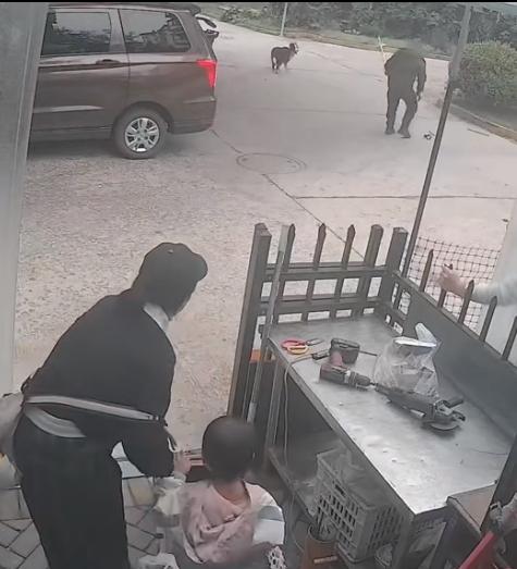 母子路遇恶狗袭击,旁边装修房子的大叔挺身而出,合力击退了恶狗。事发山东某地,母子