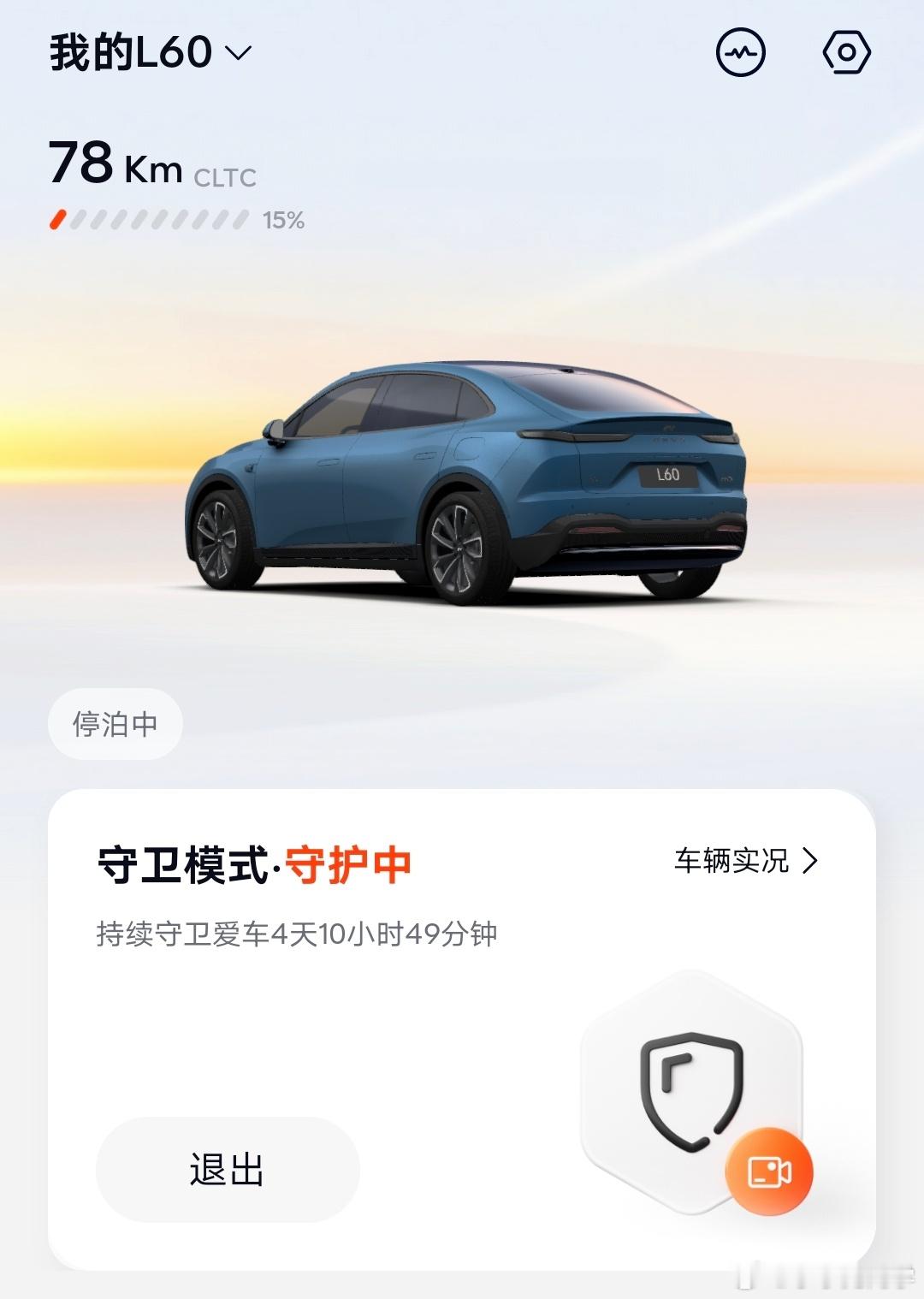 L60的守卫模式,4天又10小时,电量从112公里掉到了78公里,一天差不多掉8公里。