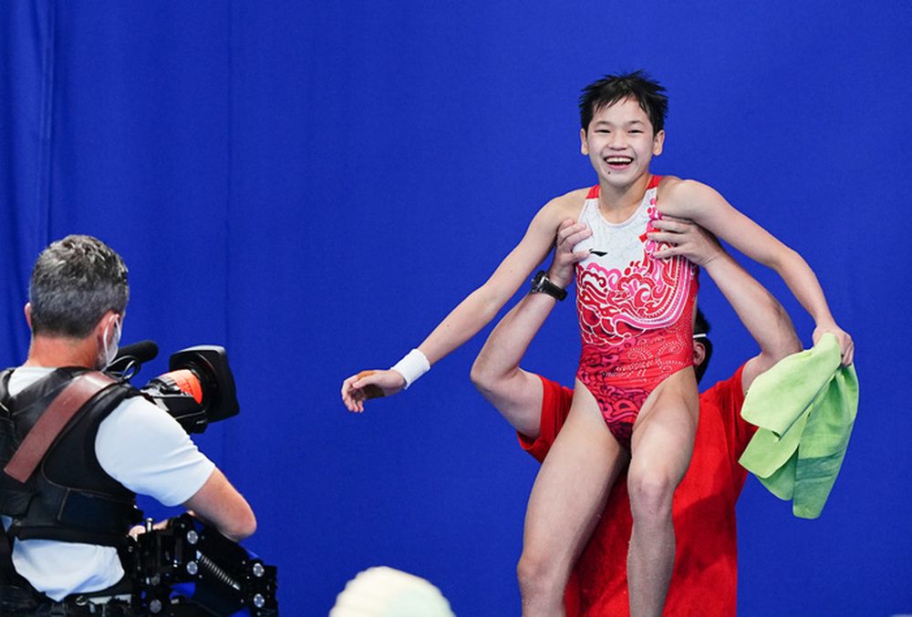 四年前的东京,那个以“水花消失术”震惊世界的14岁少女,如同一道轻盈的闪电,刻入了人们的记忆。在此后进行的陕西全运会上,这位留着男孩发型的少女成为所有人关注的焦点,她在女子10米台逆转夺冠。时隔20年,以全红婵、陈艺文为主力为广东队获全运会女子跳水团体金牌。