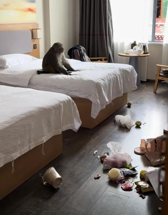 10月18日有个超离谱的事儿。一男子去西藏旅游,入住酒店放好东西就出门玩了。等他回来一推门,好家伙,床上端坐着一只野猴子,零食撒得满地都是。原来他住四楼,出门没关窗,猴子就进来了。这猴子是西藏特有的藏猕猴,属于国家二级保护动物。它还挺乖巧,见了人也不跑,除了弄撒零食也没搞别的破坏。藏猕猴善攀爬,能借助树枝、建筑外立面跳到4 - 6层。所以去西藏旅游可得记着关好门窗,不然指不定啥时候家里就来个“毛孩子”做客。