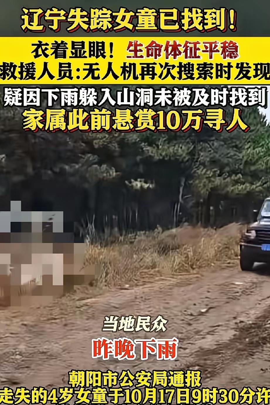 辽宁那个4岁走失女孩,是被一位大哥找到的。他带了三架无人机搜寻,发现女孩后立马联系救援队。当时女孩趴在泥地上,说摔得抬不起头。 她失踪40多小时,还赶上下雨,夜里又冷又饿,想想就心疼。还好检查后没事,爷爷奶奶总算放心了。这么多人帮忙找,也看出东北人的团结,太暖心了!