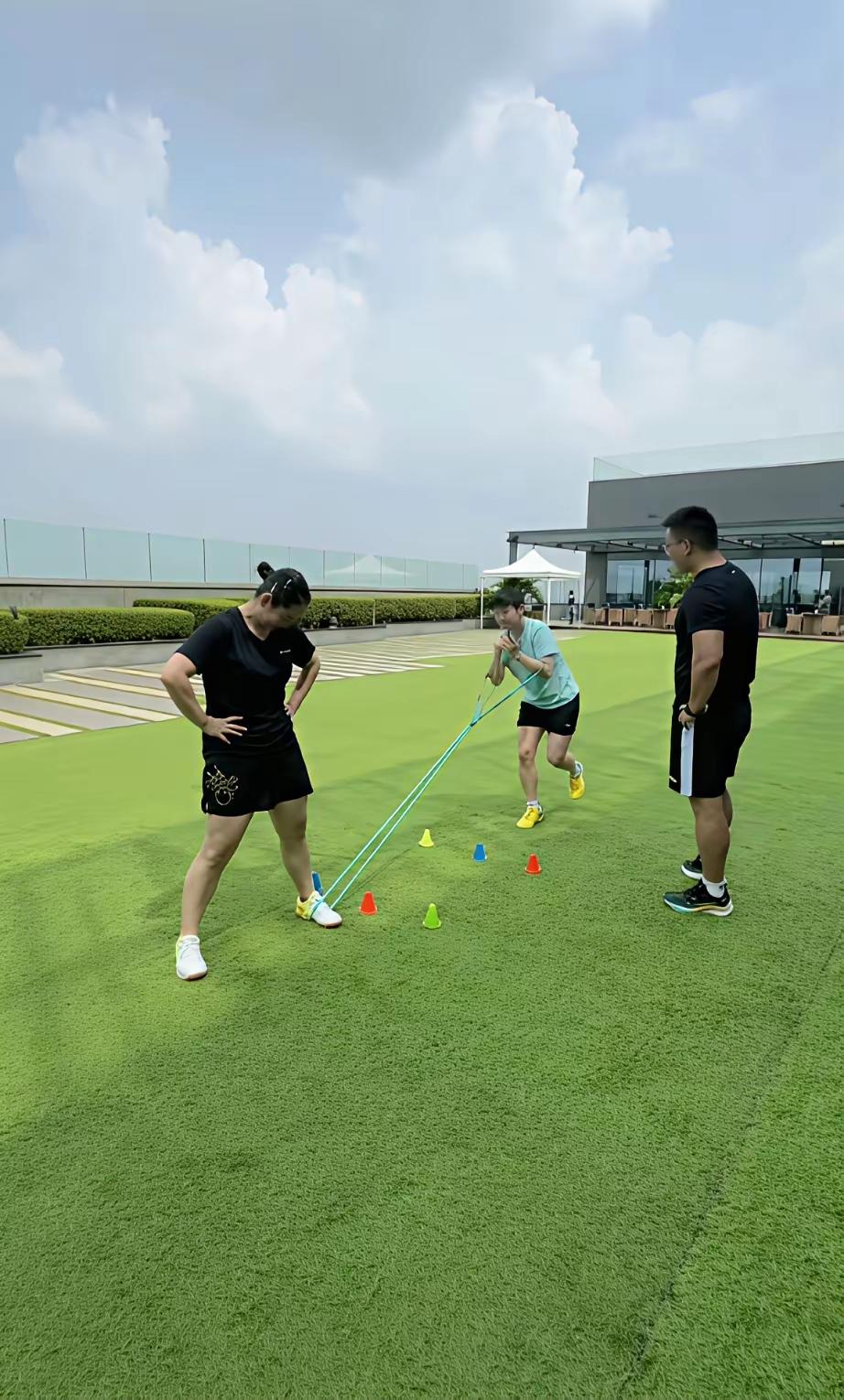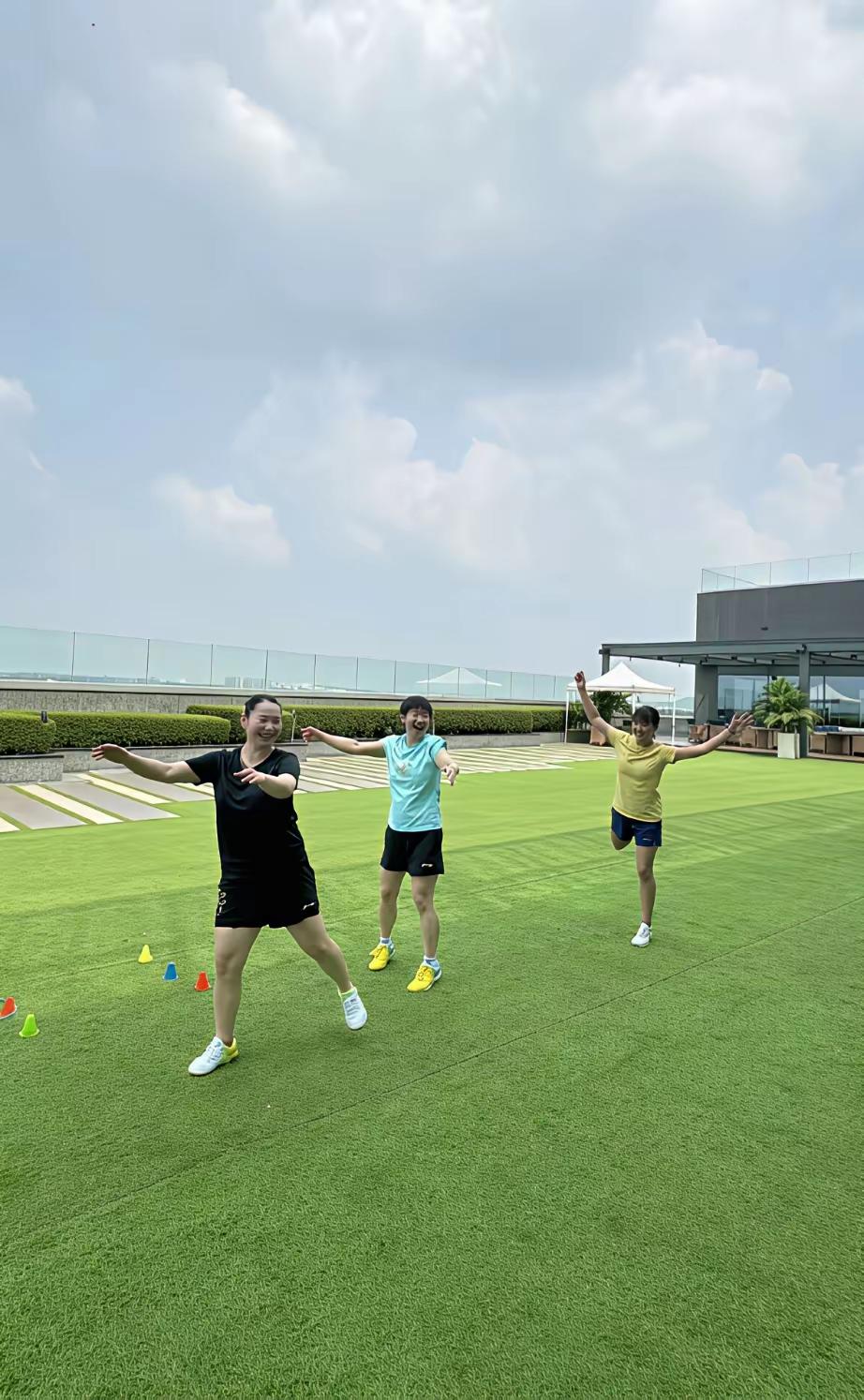 佳佳分享了莎莎小分队最新视频! 作为莎莎闺蜜的佳佳,一回北京就给我们分享了亚锦赛期间莎莎小分队训练的视频,让我们一饱眼福。 莎莎小分队在亚锦赛期间的训练,变枯燥为有趣,一个个训练着,居然跳起了美丽的“舞蹈”,欢声笑语不断。 在她们的‘’舞蹈‘’中,佳佳穿黑色的,莎莎穿淡蓝色的,小师妹穿黄色的,这服装的颜色,搭配得真美。 佳佳太懂大家了,知道莎莎一回北京就变成“人参果”了,所以在大家见不到莎莎的时候,让我们一起分享莎莎小分队的快乐时光。