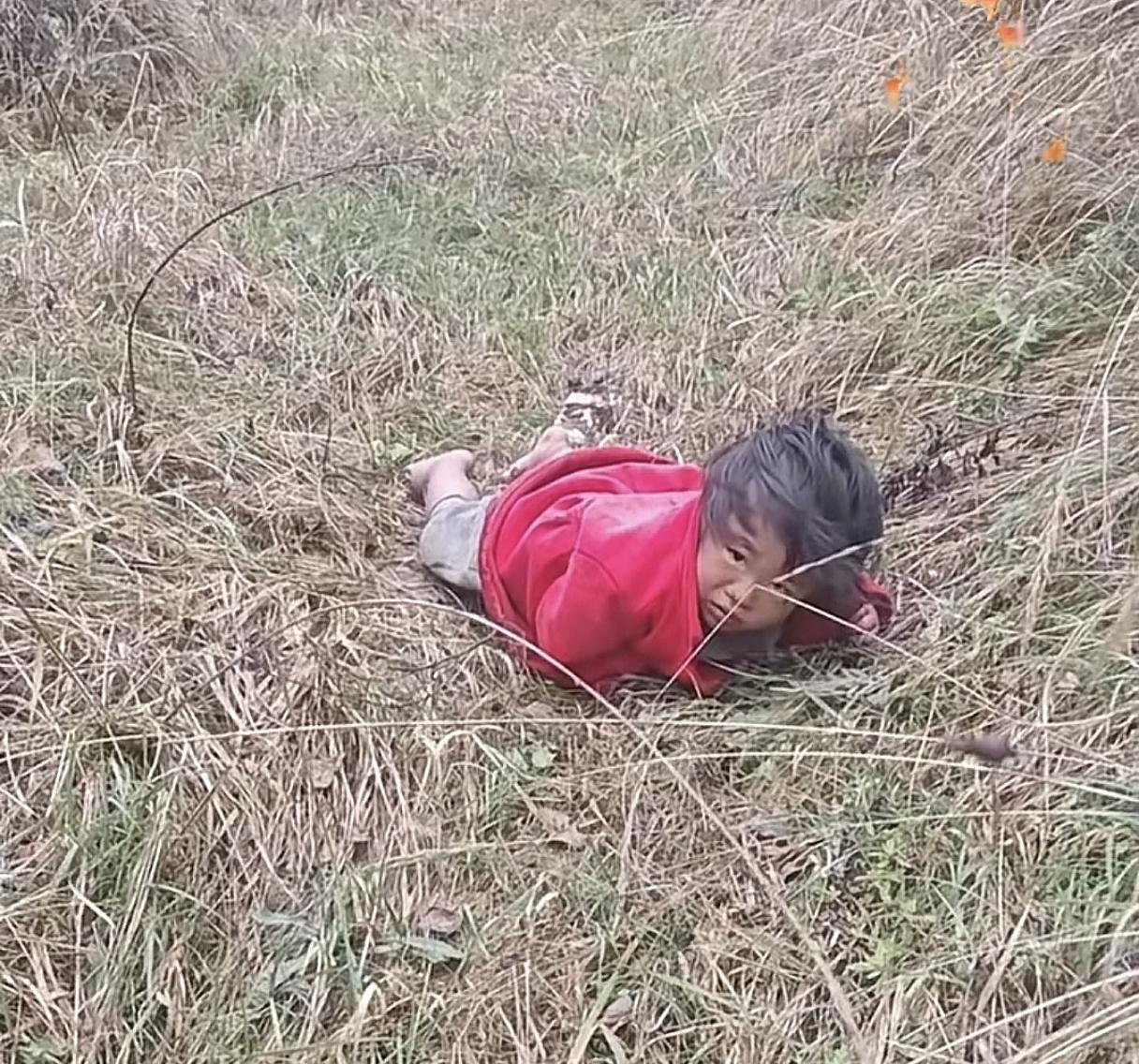 这张照片看哭了多少妈妈!孩子本来是无力的趴在地上,看到有吃的,连忙伸出肉嘟嘟的小手去拿面包往嘴里塞,看着那小手还没面包大,真让人心碎! 孩子饿了两天两夜,又从高处摔下来,能看到眼皮上有伤疤,被发现时,头发都是湿漉漉的,甩在身后的鞋子上都是泥巴,光着小脚丫趴地上,天气又冷,估计已经没多少力气了。 但是看到警察叔叔拿出面包,头也开始抬起来张望,得有多饿啊!据说是吃了两个面包,喝了很多水。 警察叔叔面包拿在手里,大概是太激动了,手都在颤抖,半天没把袋子撕开,后来还是旁边围观者撕开的袋子。 大家生怕孩子睡过去,一直鼓励她,马上就可以见到奶奶了,很快就可以喝到奶,吃到饺子了! 孩子真是太坚强了,晚上又黑又冷,大人都穿棉袄了,她却穿个单薄的外套,下雨了还知道躲山洞里避雨,真是个聪明的孩子! 孩子身穿的红外套也立了大功,找到时,孩子趴在草上,身上的红衣服也格外的显眼,救援人员才能一眼看到,及时营救,再晚一晚,后果不可设想。 愿小朋友经此一劫今后都能平安顺遂,健康快乐的长大!