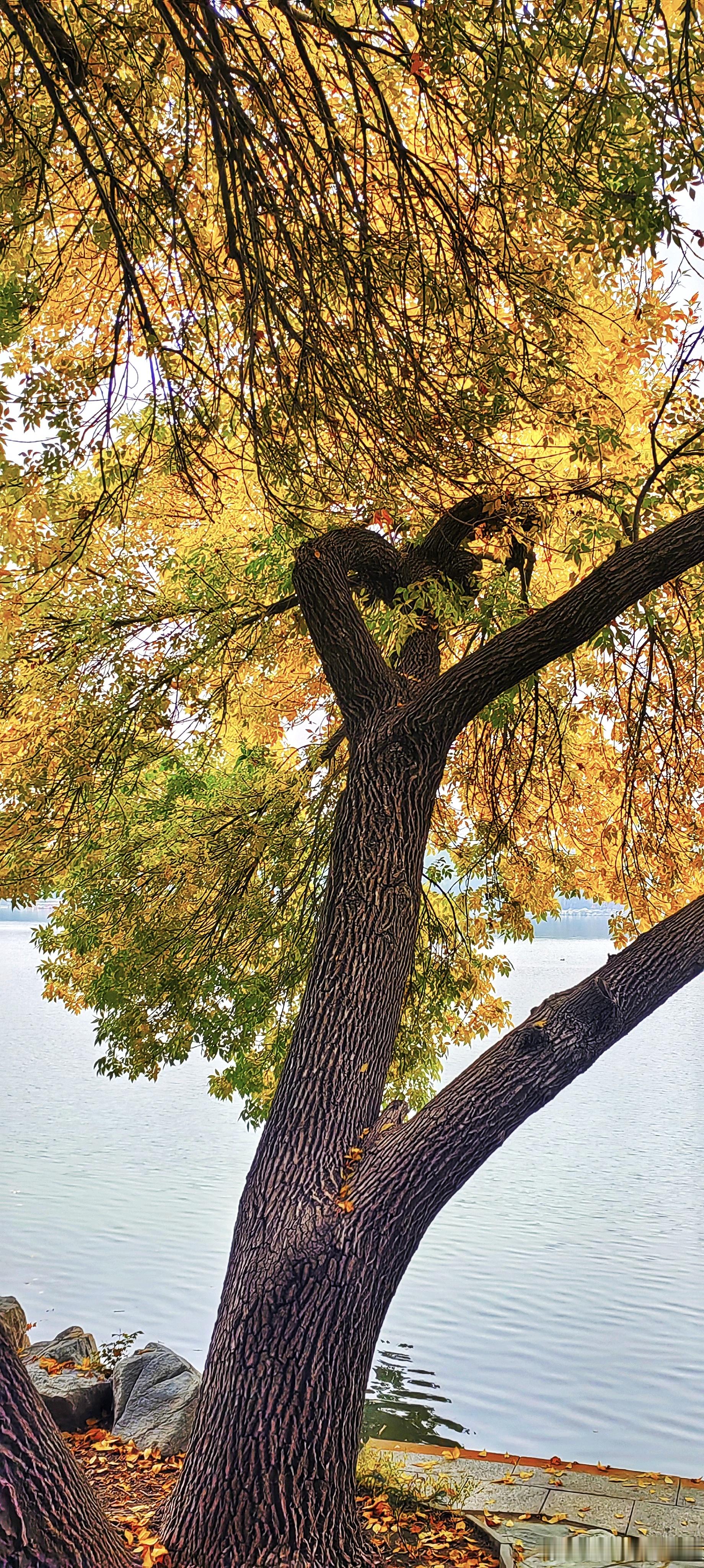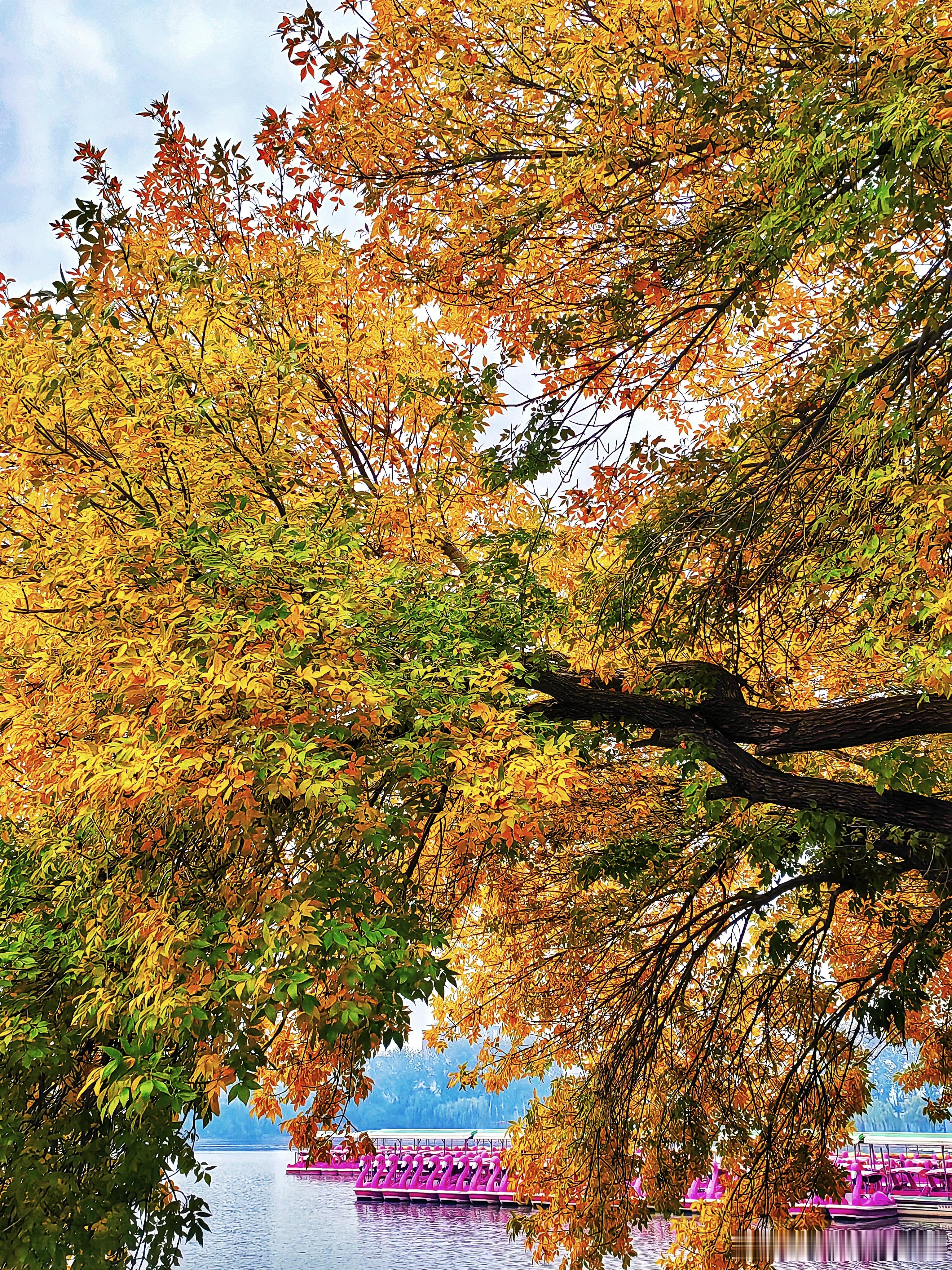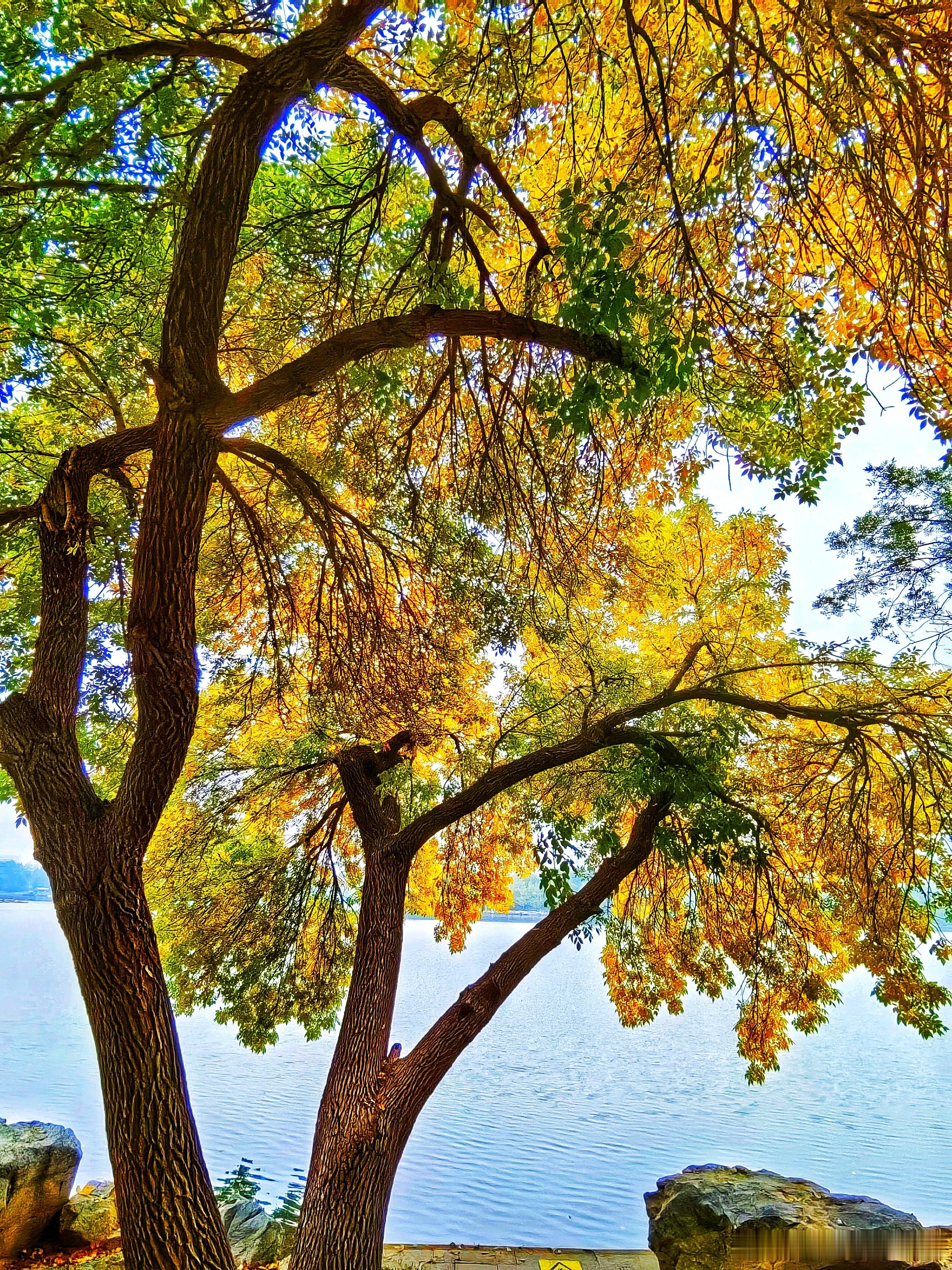 【秋天快乐】🍂🍁在怀柔雁栖湖边游走,简直美醉啦,虽然天空不是那么晴朗,但湖水