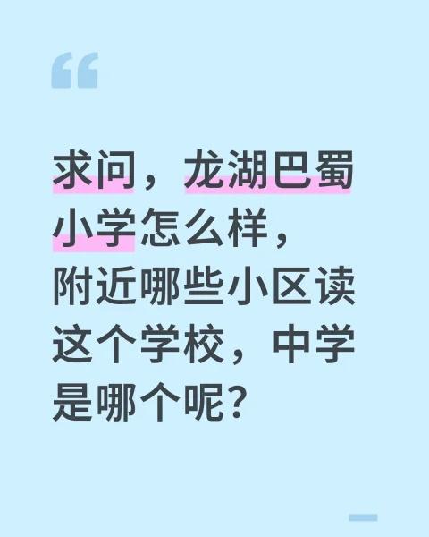 求问,龙湖巴蜀小学怎么样,附近哪些小区读这个学校,中学是哪个呢? 求问,龙湖巴蜀
