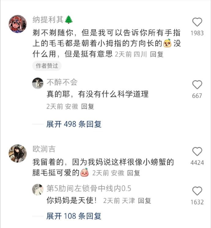 所有人放下智能手机,低头研究手毛[doge]