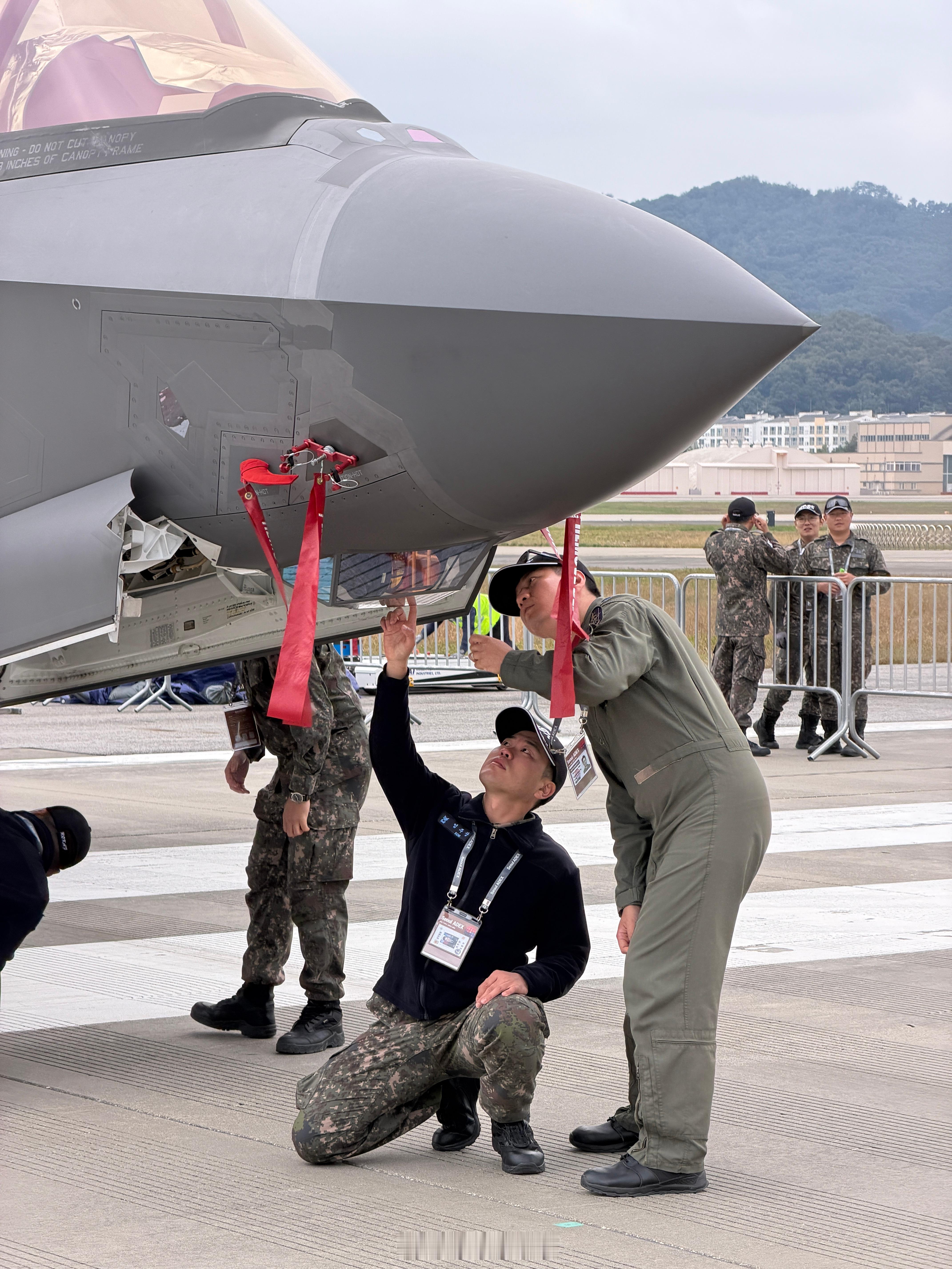 KF21不知道咋想的,本来对着跑道开车自滑,然后被拖过来对着35A开车,现在35A机组很心疼