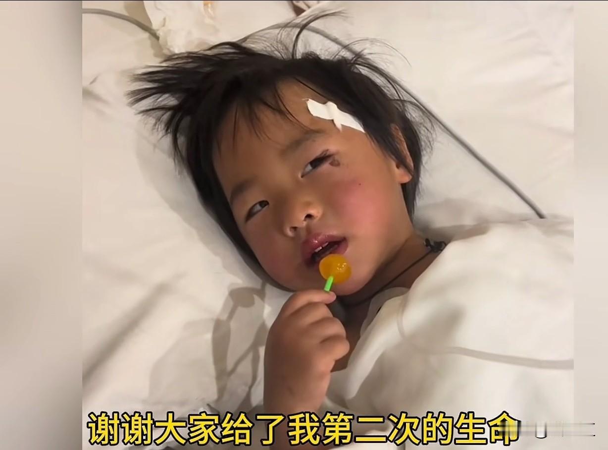看到获救的4岁女童躺在病床上,一边吃棒棒糖,一边感谢大家,就可以看出这个女孩长大