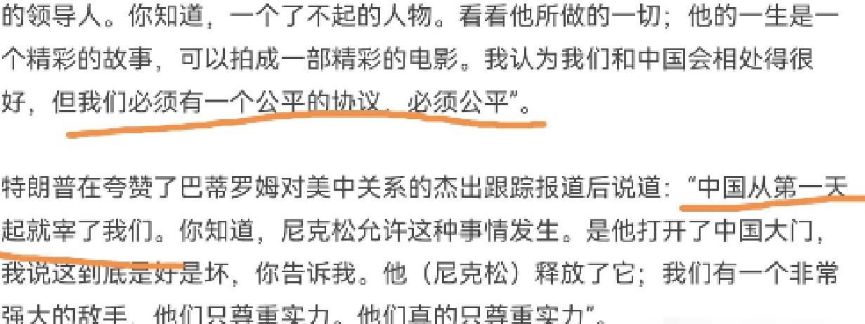 特朗普突然对我们喊话,特朗普声称,中国真的只尊重实力。10月17日,美国总统特朗普在接受采访时表示,我将和中国在两周后会晤。在这期间,中国通过加强稀土矿产的出口管制来挤压美国,而我将关税提高到100%,在他们已经支付的(关税税率)基础上,远比之前糟糕。我们拭目以待将会与中国发生什么。我和中国一直保持着良好的关系。但他们总是在寻找优势,多年来一直在“宰我们”的国家。 特朗普的这些言论完全是在“甩锅”的路上越走越远。他的逻辑听起来像是摆好了受害者的架子,而一再忽略了关键的问题:是谁挑起了贸易摩擦,又是谁将两国本有的经贸合作环境搅得一团乱?稍微回顾一下前因后果,大家心里就能明白,美国从一开始就不是无辜的牺牲者,反倒更像是主导挑衅的一方。 从9月底开始,中美关系的一系列摩擦,根本就是从美国单方面挑起的。马德里会谈刚有点缓和的迹象,美国立马来了波骚操作,直接把数千家中国企业拉进“实体清单”,掐断供应链;紧还搞起了什么船舶制裁和增加港口特别税,给中方的合作态度迅速泼了一盆冷水。这样的挑衅显然是有备而来,但特朗普却把这些动作全然忽略,直接定性为“中国在挤压美国”,这未免太荒唐了。 至于稀土问题,更是典型的案例。中国宣布稀土出口管制,并不是“主动出击”,而是对美国多次单边施压的合理反制。游戏双方若失去了平等和尊重,新的规则就需要被书写。中国并不想主动打压谁,但美国步步紧逼,不给条后路,这才让中国亮出了底牌。何况稀土问题从来不是今天才提出来,美国自己心里也有本账本,清楚稀土问题上他们根本承受不起长期对峙的风险。 按照特朗普的说法,100%的关税提升是“被迫为之”。可他忽视了关税大棒挥在自家企业和消费者身上的事实。过往的数据显示,这样的关税战只会抬高物价、压垮企业,而最终买单的还是美国的普通老百姓。那些早在2018年就支持特朗普贸易政策的企业和农业从业者,如今依然苦不堪言。这几年,美国农民流露的愤怒和失望在源源不断表达,而特朗普用再多的“优越”措辞,也掩盖不了农牧民真实经历中的痛楚。 事实上,看看美国自己对于稀土的依赖程度,就能发现,所谓的“挤压”其实是对美国国内深层次隐患的一记暴露。长期以来,美国在稀土产业链上缺乏足够的自给能力,连最基础的稀土分离设施都没有建设起来,导致不得不在关键领域严重依靠中国的供应链。包括先进战斗机、潜艇等高科技军用器材在内,都离不开中国稀土,如果没有这些原材料支持,美国那些口口声声维护的“国家安全”计划也可能拖后腿。这并不是中国的“错”,而是美国长久以来因短视导致的结果。 最让人无奈的是,特朗普一边对着媒体信誓旦旦地表态称自己和中国“保持良好的关系”,一边又在国际场合大打舆论战,频繁加码制裁,恶化中美经贸环境。美国表面上摆出一副要和解的姿态,暗地里却从没停止过对中国的围堵。从芯片禁令到留学生签证的阻碍,这些无一不在严酷挤压着中美关系的空间。如果说中国采取的反制措施是无奈之举,那么特朗普的霸凌之举才是真正让局势不断恶化的根源。 特朗普的每一个动作不光是给中国施压,背地里也和美国国内种种问题脱不了干系。“中国是问题所在,中国才是最大对手”的论调表面上听起来刚强,每背后的逻辑却始终在试图转移国内民怨的矛头。税负加重、通胀居高不下、生活成本不断攀升,这些问题不去从根本着手解决,而是一味放大中美对抗,试图通过“树敌”来维系政坛影响力,这才是他试图“甩锅”的最大原因。 起来,特朗普的一系列言论和行为,其目的从未改变,就是为了挑动对立,以强硬姿态在选民中争取支持。无论他如何夸赞自己在中美贸易中的“胜利”,明眼人都看得出来,他距离他口中的“成功”其实越来越远