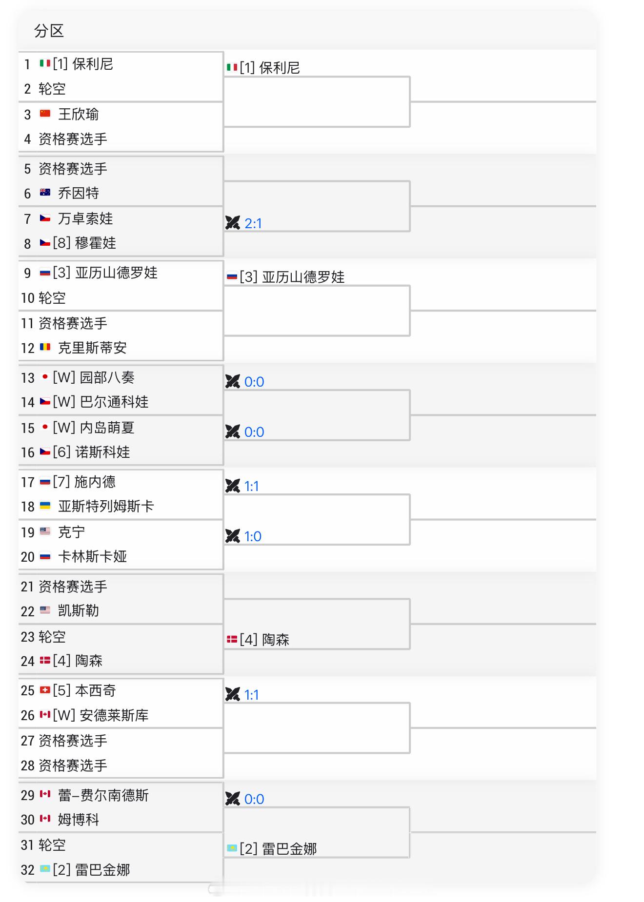 王欣瑜vs资格赛选手,胜者打保利尼。