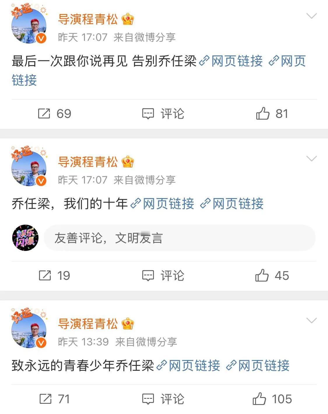 程青松在乔任梁生日当天连发三篇微博,让人不明所以,摸不着头脑,他说这是“最后一次跟你说再见”,“最后一次”是什么意思,是想翻篇重新开始,还是又有新计划要开始了!