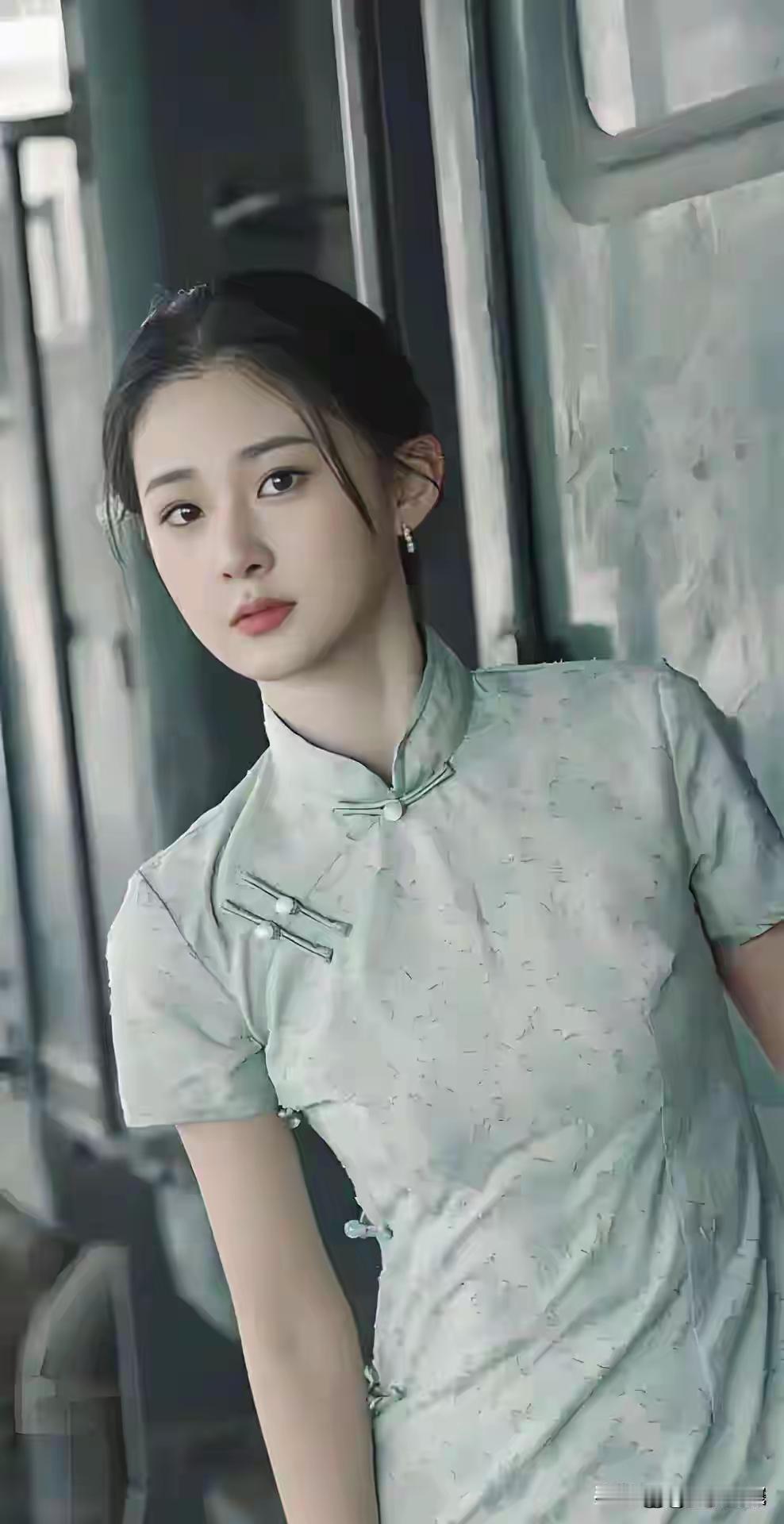 低胸粉墨裙+发簪!美女这造型,把纯欲风焊在审美上