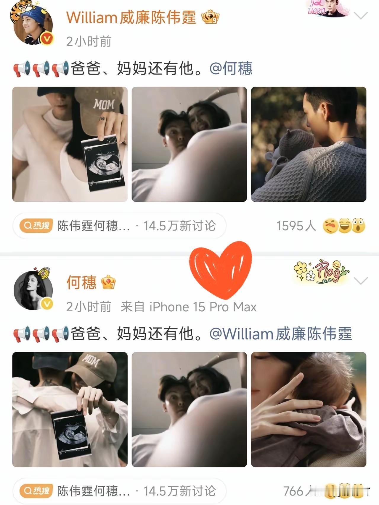 今天娱乐圈最大的瓜出现了! 不是克拉拉离婚了, 也不是小S戴大S的骨灰项链,而是陈伟霆和何穗生了个孩子! 我嘞个娘亲啊,第一眼看到,我还以为我看错了! 虽然说他们之前就被狗仔拍到过在一起,但是一直没官宣恋情,咱就是说还以为他们分开了呢…… 谁能想到这对“最神秘情侣”直接跳过官宣恋爱、结婚这些步骤,甩出B超照、孕期写真和新生儿合照,炸翻整个娱乐圈。简单一句“爸爸、妈妈还有他”,配上互相@,就这么把惊天大瓜轻描淡写地端了上来。 这对情侣的保密工作简直做到极致。2019年他们在上海一场时装电影酒会初次相识,直到2021年8月被拍到同回住处恋情才曝光。因为两人都热爱健身,还被粉丝戏称为“健身房情侣”。 2023年3月曾传出分手消息,何穗被曝独自住酒店,陈伟霆被问感情时也只回应“感情,我就不回应了”。没想到去年10月两人在日本同游被偶遇,今年就直接官宣生子,所有分手传闻瞬间粉碎。 回头看看,何穗今年确实有很多反常举动。她多次社交账号停更、团队失联、甚至婉拒顶级时尚资源,当时外界就猜测她是否要“婚育隐退”。 之前晒出的泳装照中小腹微凸、清空微博等行为,现在都被网友重新解读为待产铺垫。不得不说,群众的火眼金睛从来不会错过任何细节。 陈伟霆出身香港富裕家庭,父亲留下豪宅,兄姐从商,曾被调侃“不工作也能继承家业”。如今突然当爸,网友笑称“好命哥”名副其实,这是真的含着金汤匙出生的小少爷啊。 有趣的是,两人官宣只提“爸爸、妈妈”身份,却只字未提是否结婚。部分账号使用陈伟霆何穗结婚话题,但始终没有结婚证等证据佐证,留下一个悬念让大家猜测。 在明星连谈恋爱都要发声明、婚礼必须全网直播的今天,陈伟霆和何穗直接晒娃的操作,彻底颠覆了内娱官宣模式。他们用最反常规的方式,把最私人的生活守护得滴水不漏。 各位读者你们怎么看?欢迎在评论区讨论。