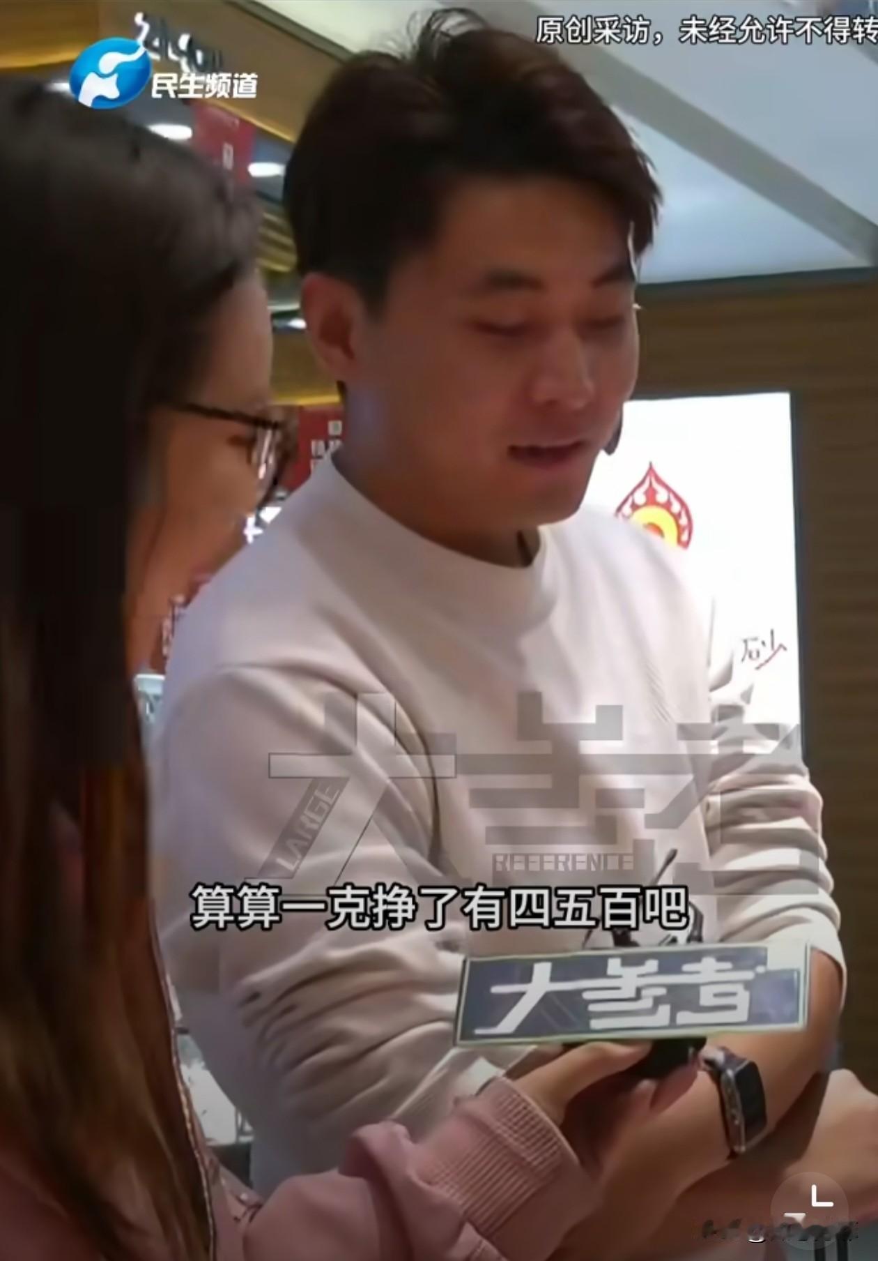 男子结婚后,每隔三个月就带妻子来买一次黄金,三年买了300克,如今金价飙升,他趁机卖出100克黄金净赚5万。男子:爱妻子是有回报的。 河南,男子2022年结婚后,每隔3个月就带妻子去金店挑首饰或金条,3年慢慢攒了300克。 2022年金价大概每克400到500元,今年10月,品牌金饰价格直接冲到1200元每克,翻了2倍多。 男子一看赚了,就先卖了100克,算下来卖的时候到手12万,当初买这100克只花了7万左右,中间净赚5万。 男子把赚的5万给老婆和自己各买了一部新款手机,既兑现了给老婆的心愿,又证明了宠妻是有回报的。 有网友觉得男子情商智商双在线,既用黄金哄得老婆开心,还顺便靠金价上涨赚了钱,把宠妻和理财完美结合,是教科书级宠妻。 也有网友认为这是运气大于选择,3年金价翻倍是特殊行情,不是常态,提醒大家不要盲目跟风。 而且买品牌金饰有加工费,实际成本比金条高,真要理财可以直接选择买金条,别把偶然收益当成必然操作。