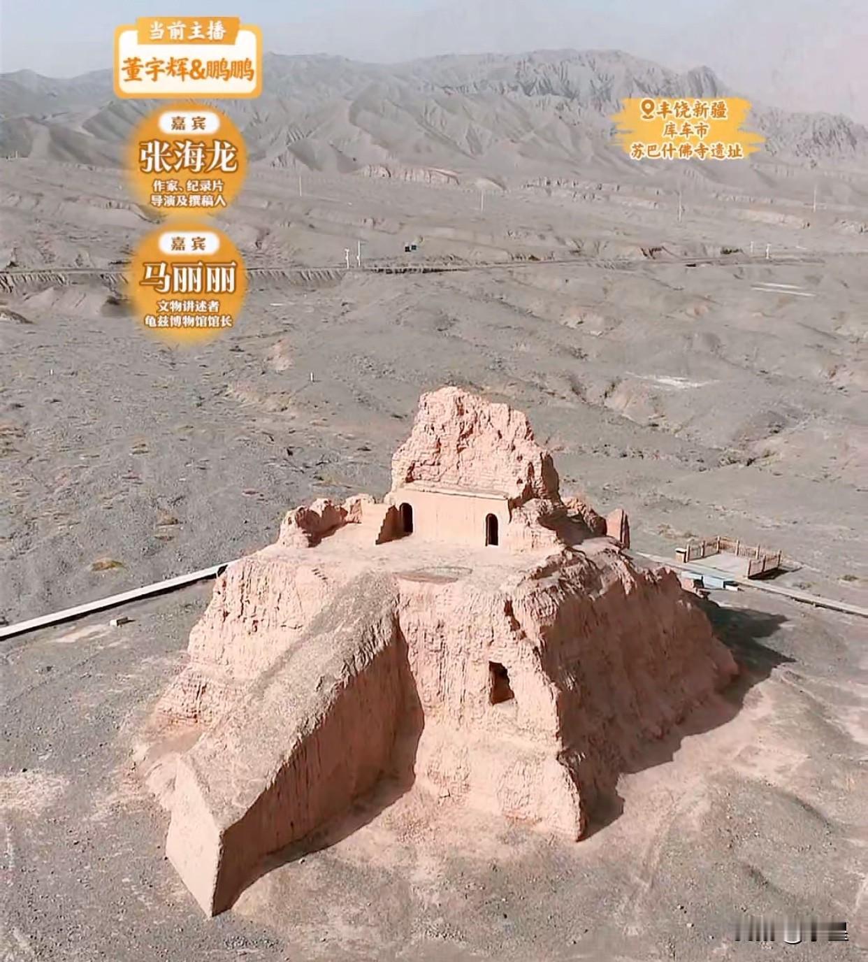 今天董宇辉新疆行来到了库车 第一站先去参观苏巴寺佛遗址 请的嘉宾也都是重量级的