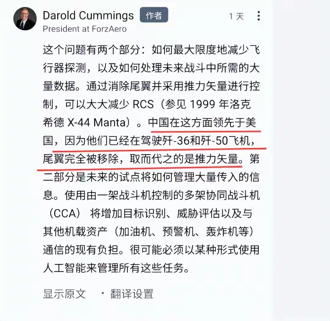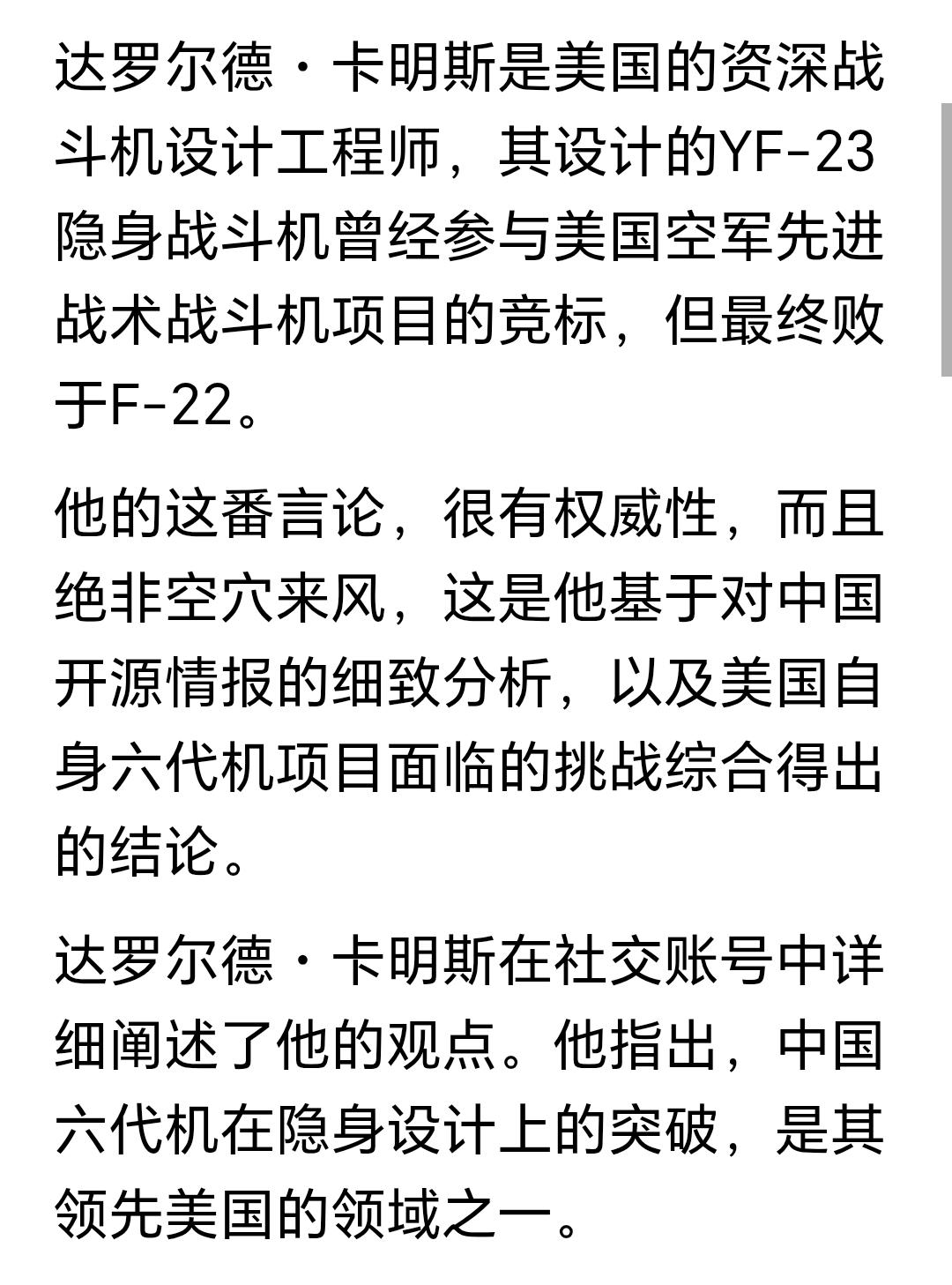 虽然税宗还在嘴硬,但是美国传奇战机的总设计师已经认输了。中国在六代战机上已经领先
