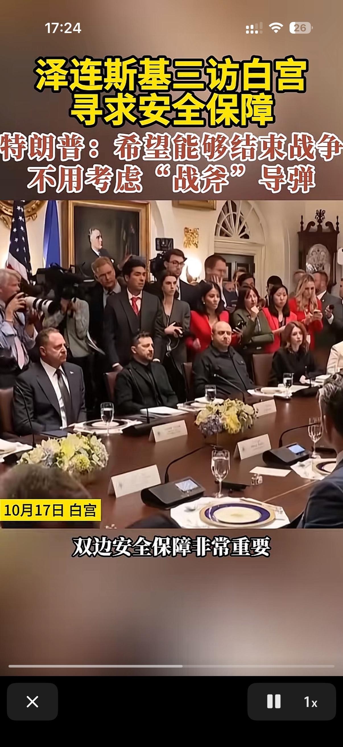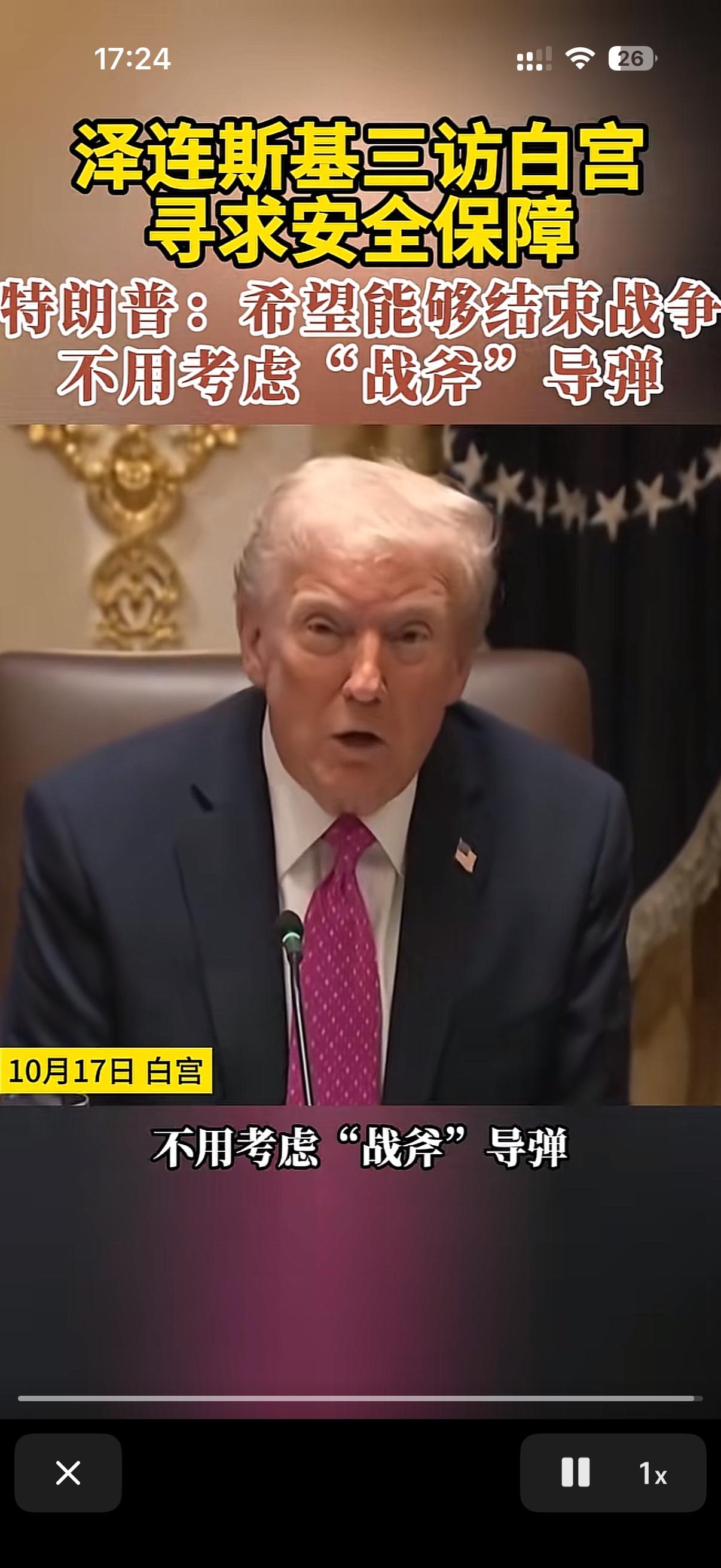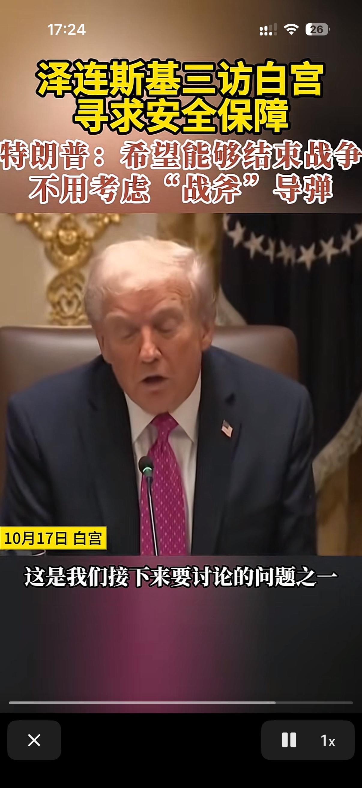 看来泽连斯基这次白宫之行还是无功而返了! 此前特朗普无论是在社交媒体还是新闻讲话上都话里话外的透露出,美国一定会给乌克兰提供战斧导弹。 要知道战斧导弹这种远程武器一直都是大国专有的战略武器是禁止出口的! 此前特朗普和普京见面的时候还打趣问介意美国提供战斧给乌克兰么? 也许正是因为这些消息,所以这次泽连斯基的白宫之行才如此的踌躇满志,可惜见面却让特朗普给了泽连斯基当头一棒,当泽连斯基说乌克兰如何如何的需要战斧导弹来谋求安全的时候,特朗普很明确的拒绝了泽连斯基。 并且特朗普说了乌克兰需要的不是战斧导弹,乌克兰需要的是和平,泽连斯基现在应该回去和俄罗斯好好谈判! 可以说泽连斯基的三次白宫之行两次都被戏耍了!吐槽 聚焦俄罗斯乌克兰局势 乌克兰