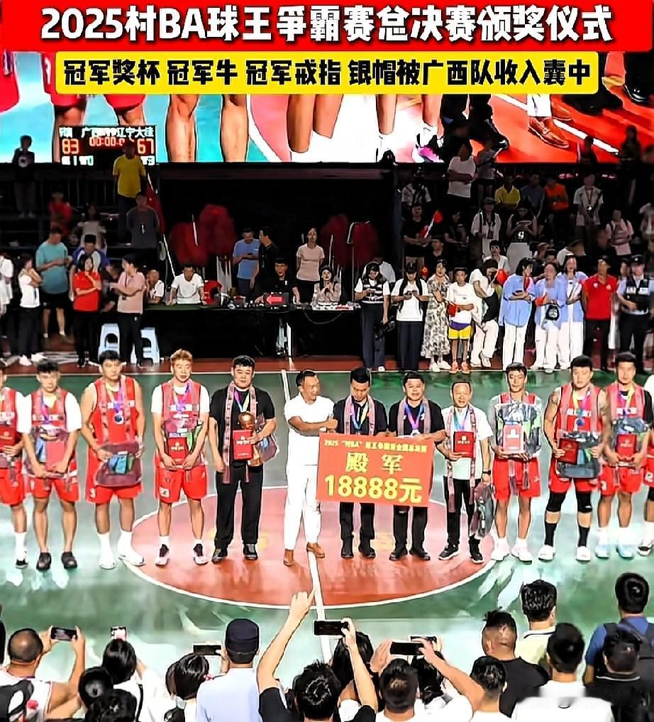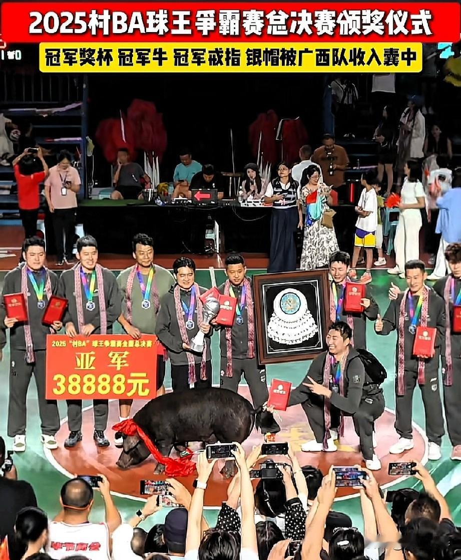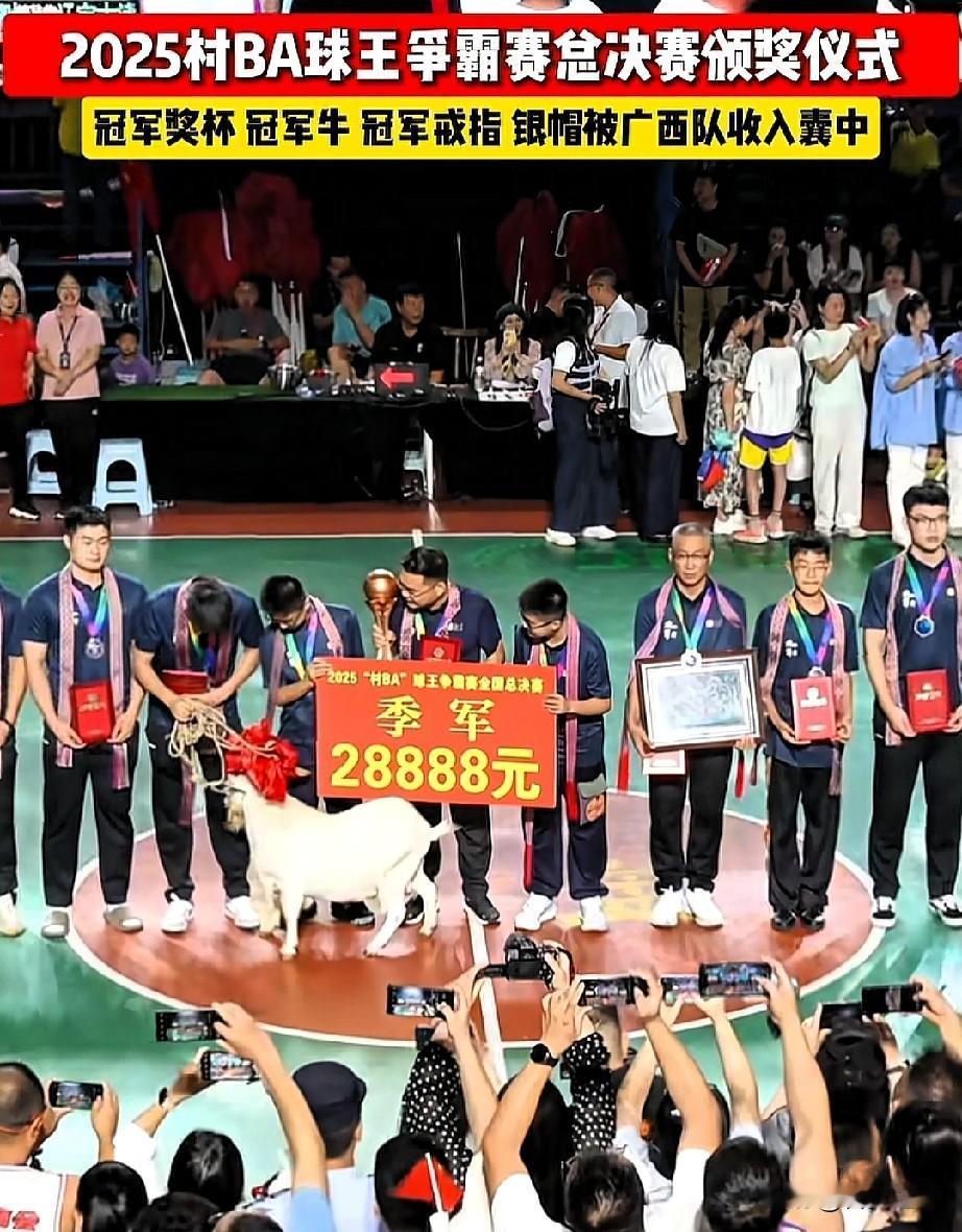 贵州台江文旅[赞][赞][赞] 贵州台盘村举办的全国和美乡村篮球(村BA)总决赛,风头盖过在厦门凤凰体育馆举行的CBA全明星赛! 贵州台盘村BA总决赛,精彩比赛燃爆全场! 来自福建晋江获得总冠军! 总决赛奖品: 1、冠军奖杯、非遗银帽、奖金48888元、一头大黄牛! 2、亚军奖杯、银项圈、奖金38888元、一头黑猪! 3、季军奖杯、非遗绣片、奖金28888元、一只羊! 4、殿军奖杯、奖金18888元、村BA相框、村BA背包!