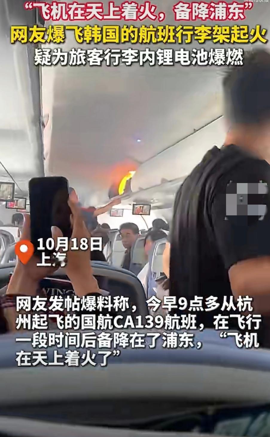 杭州飞韩国航班突发火情! 坐飞机正啃着面包呢,头顶行李架突然“砰”一声窜出火苗?今天国航CA139航班的乘客算是经历了一把“空中惊魂”! 这趟从杭州飞韩国仁川的航班,刚起飞三四十分钟就出了状况——行李架里浓烟直冒,火都把架子熏黑了,客舱里瞬间全是烟味,有乘客吓得大喊“快点”,还有人说像拍电影一样刺激 。好在没等大家慌神,机组立马按流程灭火,乘客们也特配合,最后11点多稳稳备降上海浦东,全机人没一个受伤,国航还赶紧调了新飞机接大家继续走 。 后来官方一通报才知道,又是“锂电池惹的祸”!有旅客手提行李里的锂电池自燃了,这小东西看着不起眼,受点挤压碰撞就容易短路发火,在密闭机舱里简直是“移动火源”。不过这次能化险为夷,真得夸两句:一是机组够专业,灭火、备降一套操作行云流水,没像有的航班那样手忙脚乱;二是现在安检真不是瞎较真——今年6月起就明确不让带没3C标的充电宝,锂电池也严禁托运,这规矩真是保命的 。 说真的,别觉得充电宝、电子烟电池是小物件,上飞机前必须好好检查,飞行中也千万别偷偷充电。咱图方便,但安全才是头等大事! 你坐飞机时会特意检查锂电池设备吗?有没有遇过类似的突发状况?评论区分享个你的乘机安全小经验,让大家都涨涨见识! 国航CA139航班备降 锂电池自燃有多危险