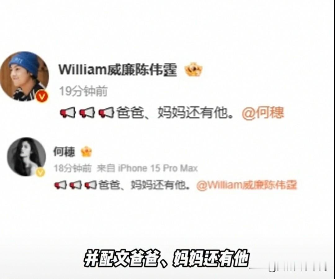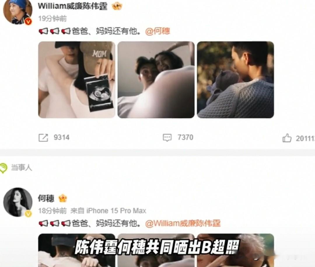陈伟霆何穗官宣得子,恭喜恭喜[作揖][作揖][作揖] 陈伟霆剧播完了才公开[流泪][流泪][流泪]好了,黄子韬现在彻底没有热度了[捂脸][捂脸][捂脸]何穗也是体面人 等剧播完磕cp的嗑完才官宣[呲牙][呲牙][呲牙]艺人如果想瞒的话果然是真能瞒住啊[星星眼][星星眼][星星眼] 终于知道妍妍为什么不接电话了,怕挨何穗的毒打[微笑][微笑][微笑]不官宣在一起,不官宣结婚,不官宣怀孕,直接就是,已经生 ……生出来了[我想静静][我想静静][我想静静]