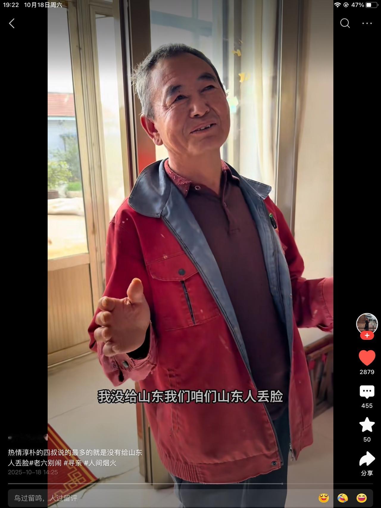 这两天认亲的那个外地人被网曝了,路过山东老家,打听路人,居然是自己的叔叔。由此,叔叔领回家,好吃好喝招待着。 这里说因为事发突然,去叔叔家没带礼品,也说的过去。期间家属屁股订在了椅子上,长辈进来,也不站起来,也给家属说两句。都不认识,不知该叫什么,语言不通,还怕叫错了。 吃饭期间,不用主家张罗,一边拍视频,一边拿筷子大口吃。只能说,这个博主受到的教育跟俺们不一样。礼仪方面,还是差点。要么就是说,从心里没瞧得起农村老家这些人。表达敬意也好,表达感谢也罢,你现在哪里都有超市,你有心的话,礼物都能补上。 又或者给孩子发个红包。人家不要是人家的事,你没有任何表示,那就是你的事。作为山东人,我轻点喷你,毕竟你被喷了不是你叔叔的本意。他于心不忍。