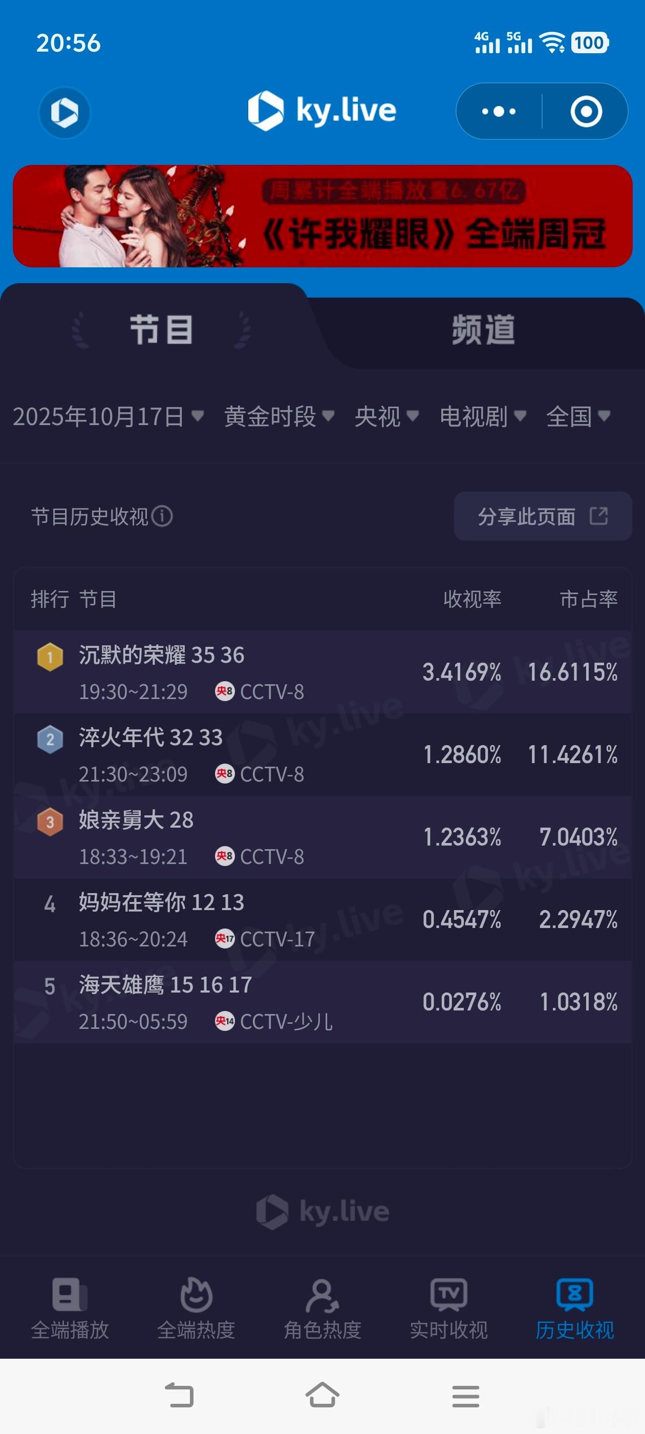 沉默的荣耀10月17日cvb收视日报