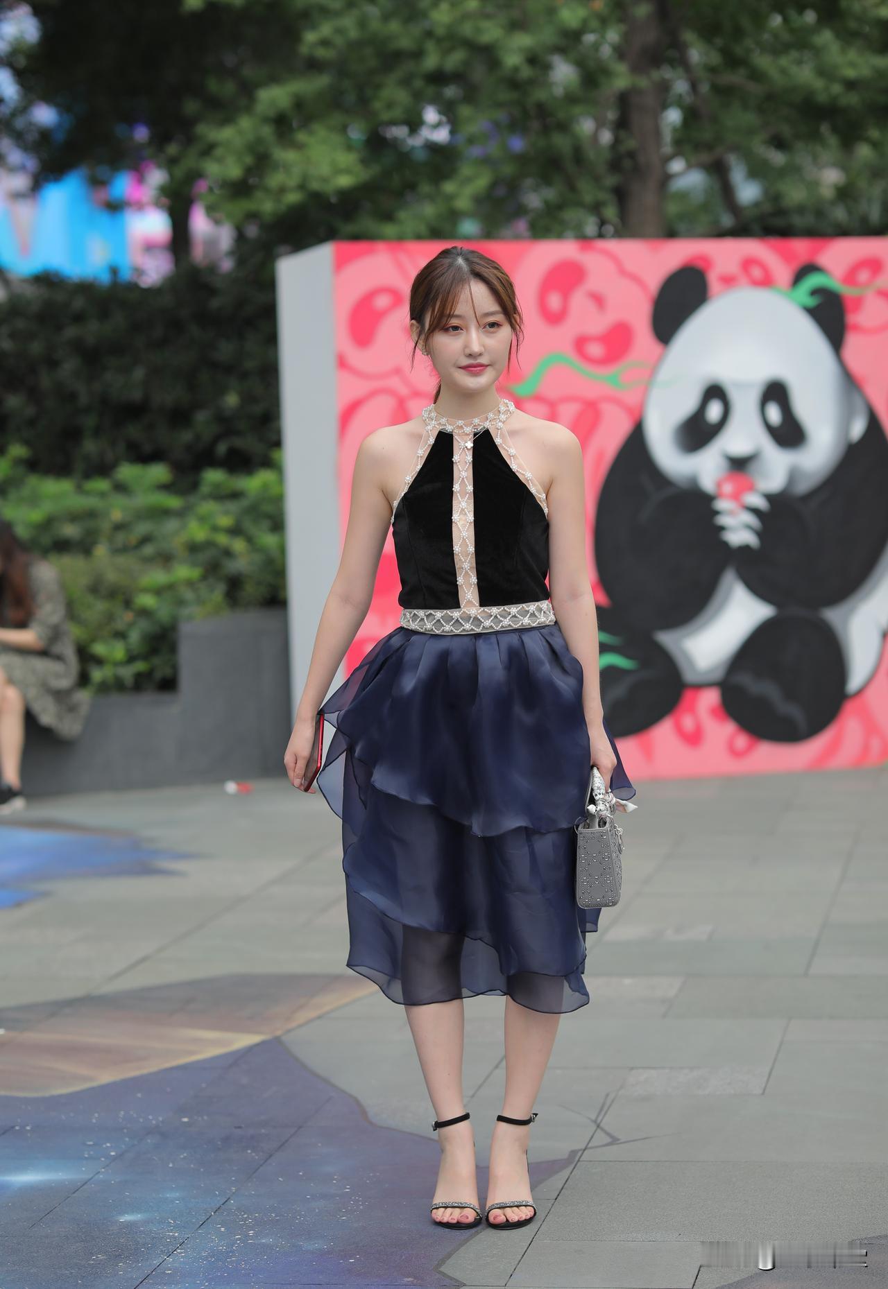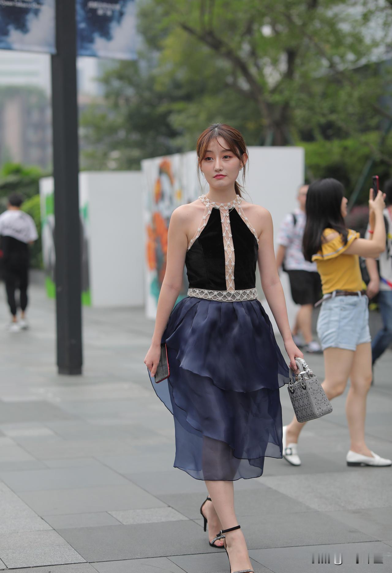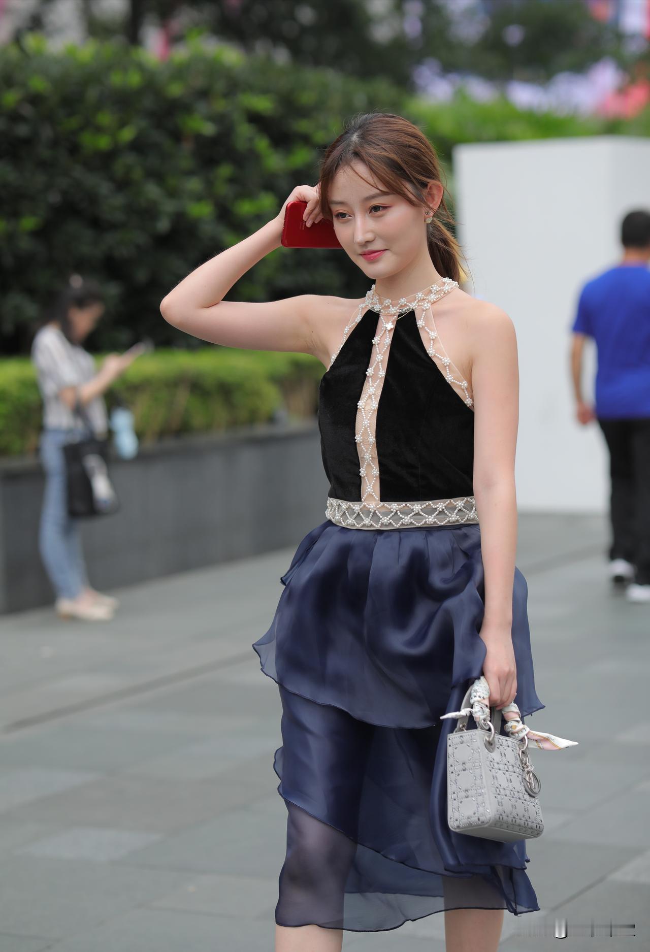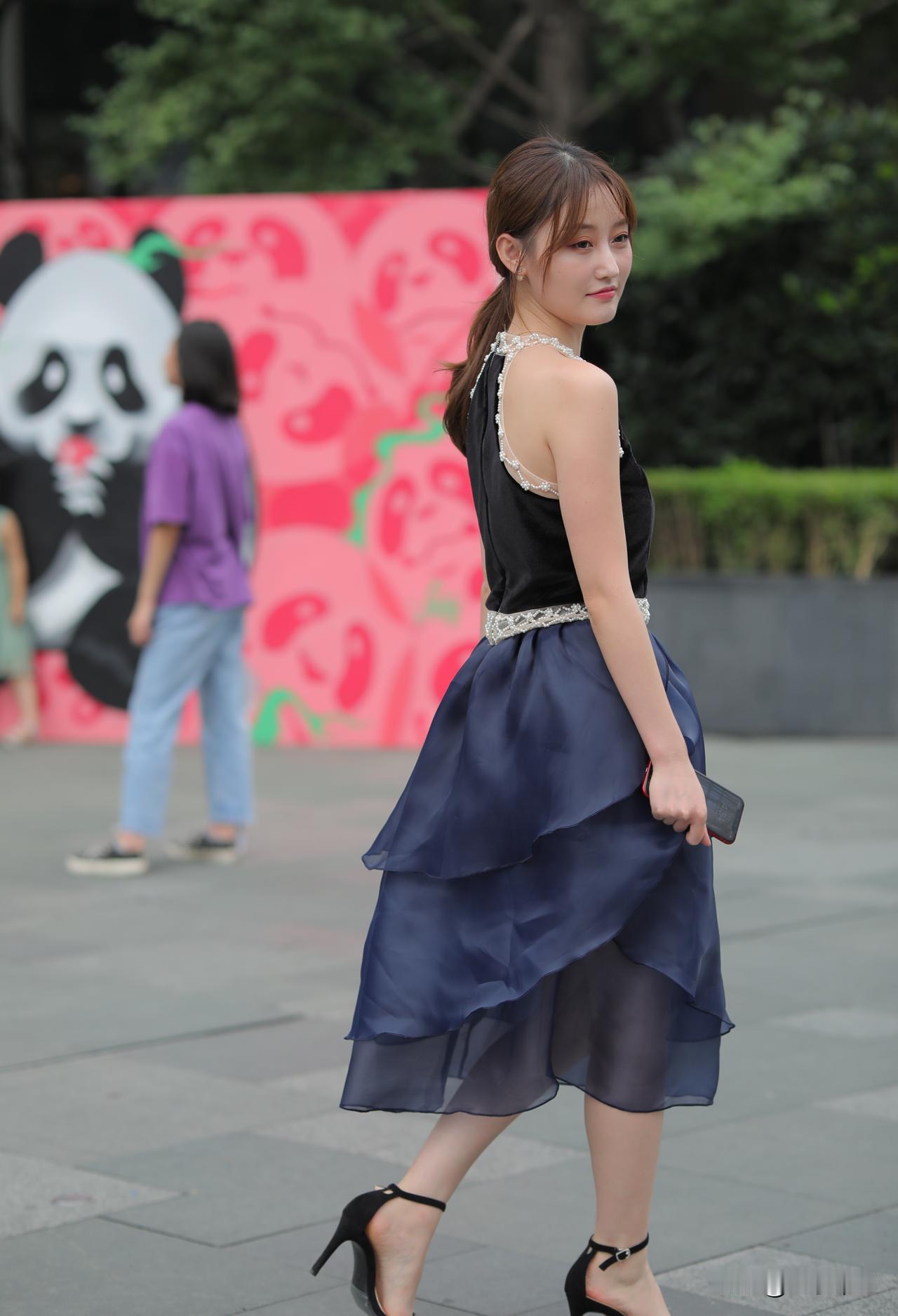 挂脖无袖连衣裙清秀魅力马尾辫小姐姐 !!!