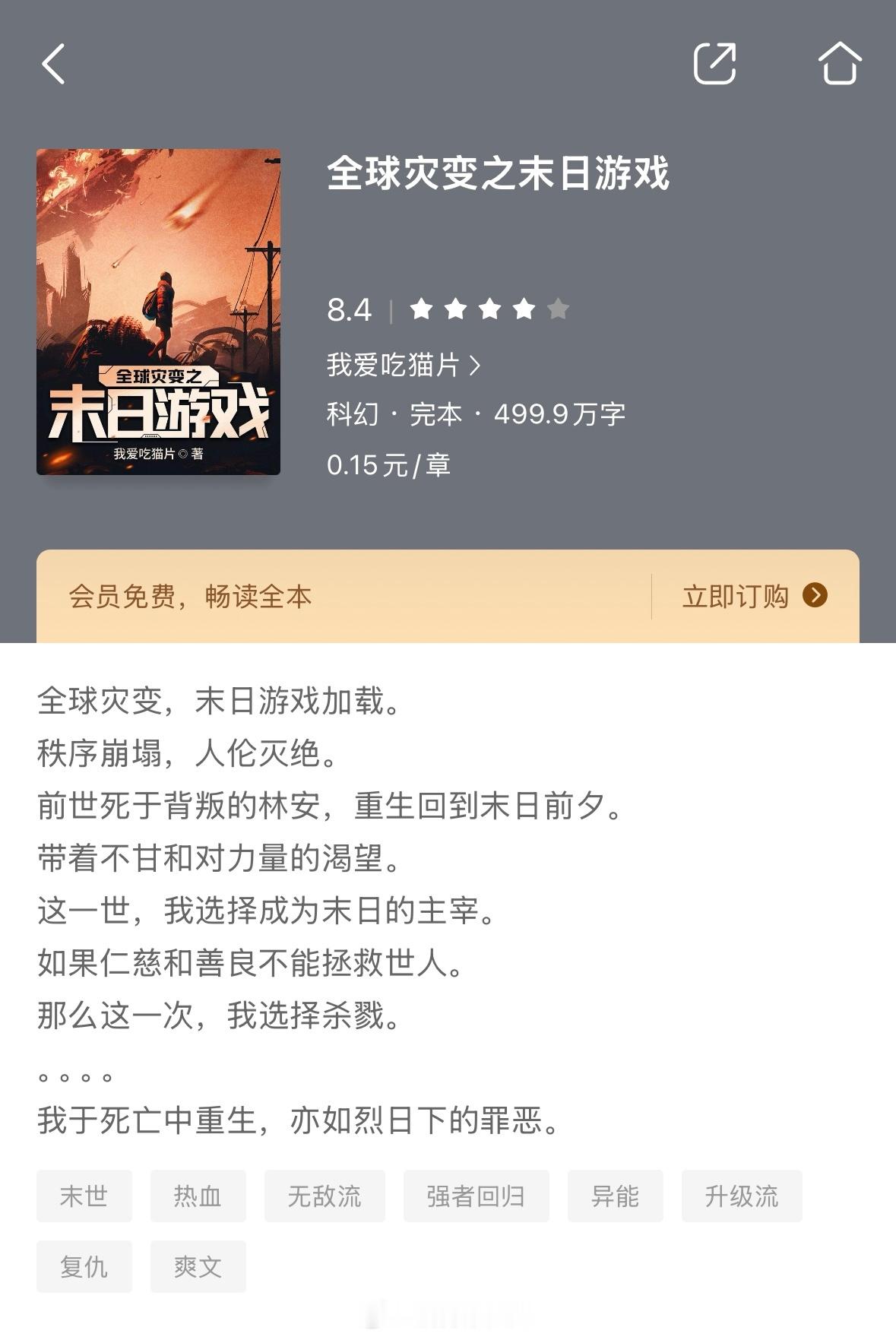 《全球灾变之末日游戏》作者:我爱吃猫片