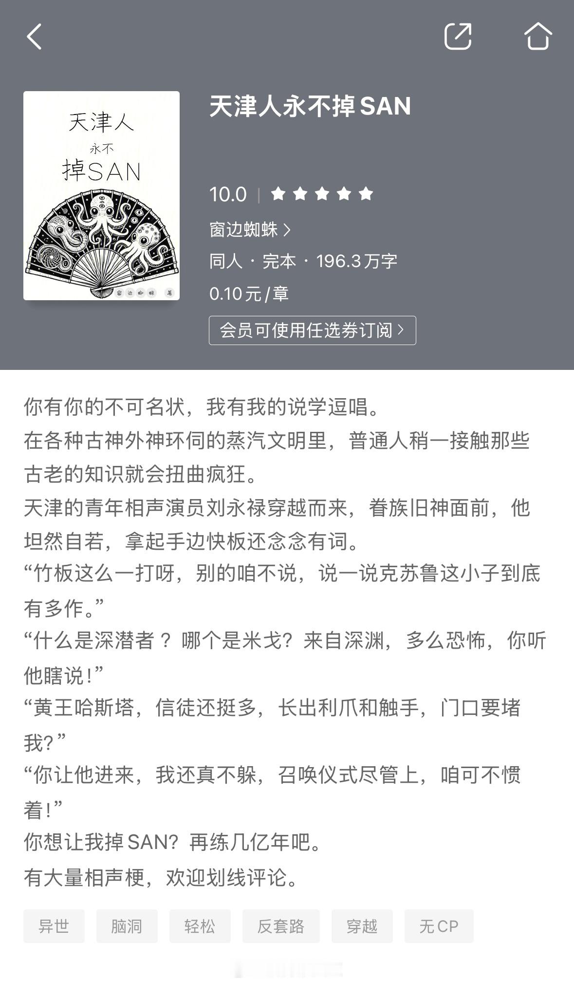 《天津人永不掉SAN》作者:窗边蜘蛛