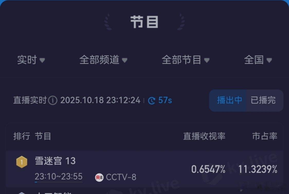 黄景瑜雪迷宫 第18轮,收视率同时段第一。[yeah]