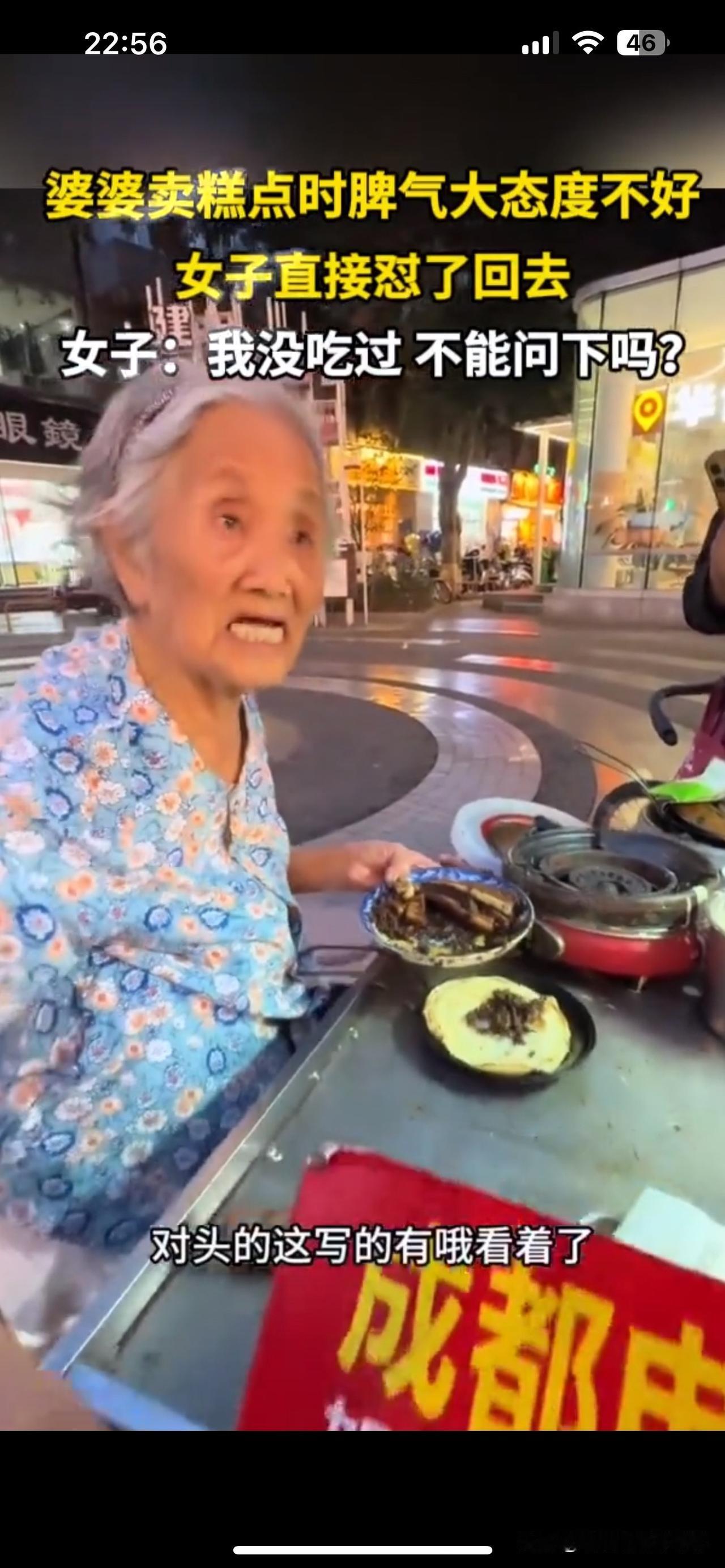 成都卖蛋糕老奶奶用内裤当抹布终于塌方了,网友看到后好声相劝这样不卫生,就这一句话把老奶奶气的差一点卡倒,奶奶凶巴巴说老子是大网红,大名人,你们爱买不买, 一个小蛋糕也就四元钱卖到十七八元,一人提议太贵了,他说买不起就别吃,就这种品行还嚣张的不行,看你年龄大了,不和你一般见识,她却得瑟的不要不要的,凶巴巴的样子看了吓人 这么泼的九十岁老太婆,找不出一点善良的地方,如果城管去管他,他真的会当街耍泼打滚的,她会碰瓷倒地的,她把成都无德老人表现的淋漓尽致 媒体力量真的大气,这次奶奶彻底翻车,怪不得本地的人看着她都绕他走,有些外地主播为了流量千里迢迢的来这里来吃他的小蛋糕!不知道图什么 不是所有的老人都是值得尊敬的,很多只是坏人变老了,天天倚老卖老,因为年龄大,照顾他的生意,大家处于同情,后来她感觉大家是应该的,不懂感恩的人都会凉凉的。