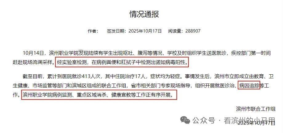 滨州一高校外卖激增 近日,山东滨州职业学院外卖餐激增,受“集体腹泻”事件影响,该校部分学生选择点校外的外卖,一到饭点,地上和围墙上成堆成堆的外卖餐,学生们像“找茬”一样在寻觅自己的外卖。 10月17日,滨州市联合工作组《情况通报》显示,经实验室检测,在病例粪便和肛拭子中检测出诺如病毒阳性。病因追踪、病例监测、重点区域消杀、健康宣教等工作正有序开展。此前,滨职工作人员在接受中国新闻周刊记者采访时,曾表示目前相关专家对餐饮、水源,以及服务人员排泄物等进行化验,并对自来水及直饮水进行采样,“现在检测的报告是没有问题的”...... 即便如此,很多学生在病因尚在追踪的情况下,对校内用餐用水仍不放心,选择点校外的外卖餐,这是导致该校外卖激增的主要原因。 那么,滨州职业学院在“健康宣传”上是怎么展开工作的呢? 小编搜索该校数个平台的官微账号更新,发现没有关于此事件的任何描述,甚至连科普诺如病毒和预防的信息都没有。总体感觉此次滨州职业学院在应对舆论和主动宣传上的工作很不到位!值得该校反思...... 如何扭转事件带来的各种反常行为(如外卖餐激增)?如何让学生们减少恐惧、预防传染?起码当事校方更应主动“健康宣传”! 来源 看滨州综合滨州市健康委员会等