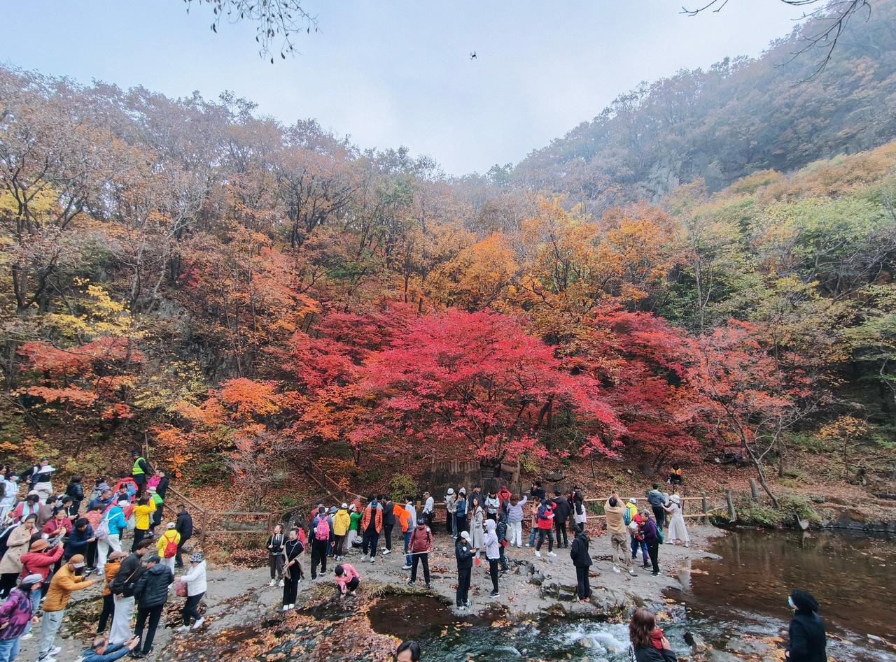 追风行者自驾盘锦红海滩7日游 寒风虽至,车友们探访本溪关门山的热情却如火炽烈。漫山红叶似霞,金枫摇曳生姿,大家在凛冽中拍照漫步,追风带来的秋日盛宴让每个人心头温暖!