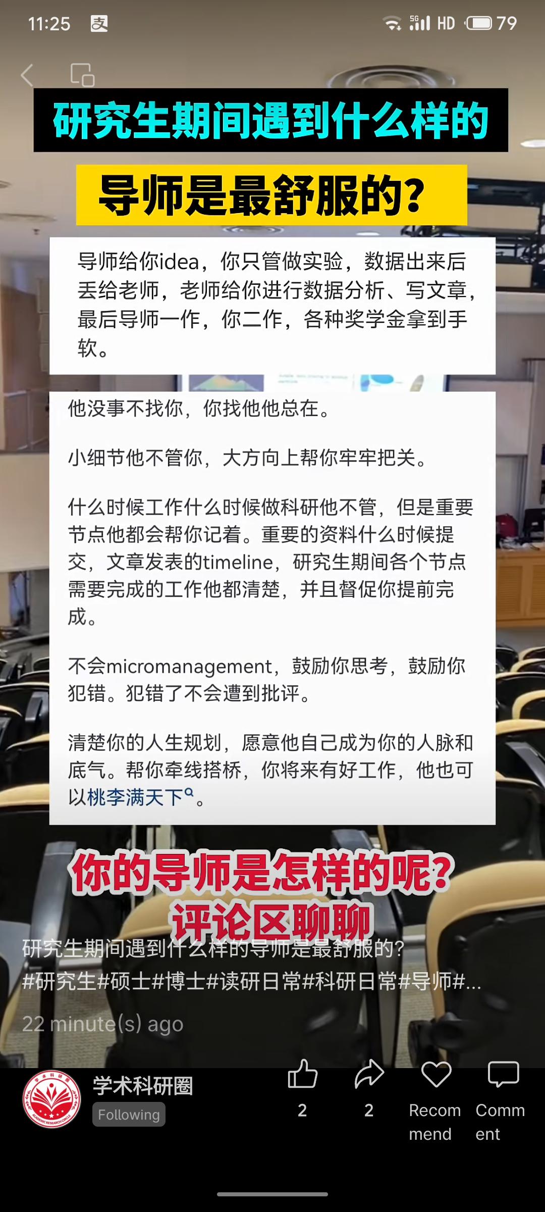 理想的研究生导师既给予充分自主,又提供关键支持:指明方向、协助成文、把牢节点。不过度干预,鼓励探索,并愿成为学生未来发展的坚实人脉。这种亦师亦友的指导最是难得。