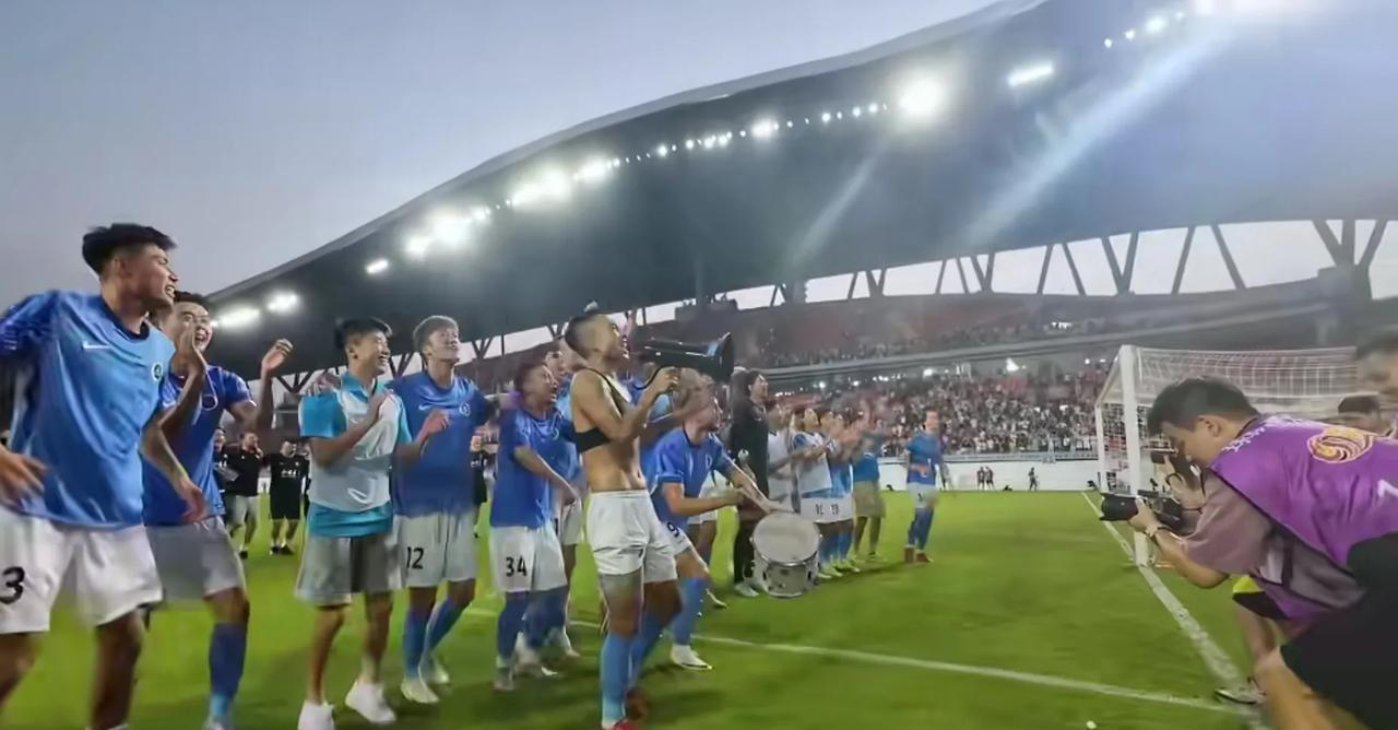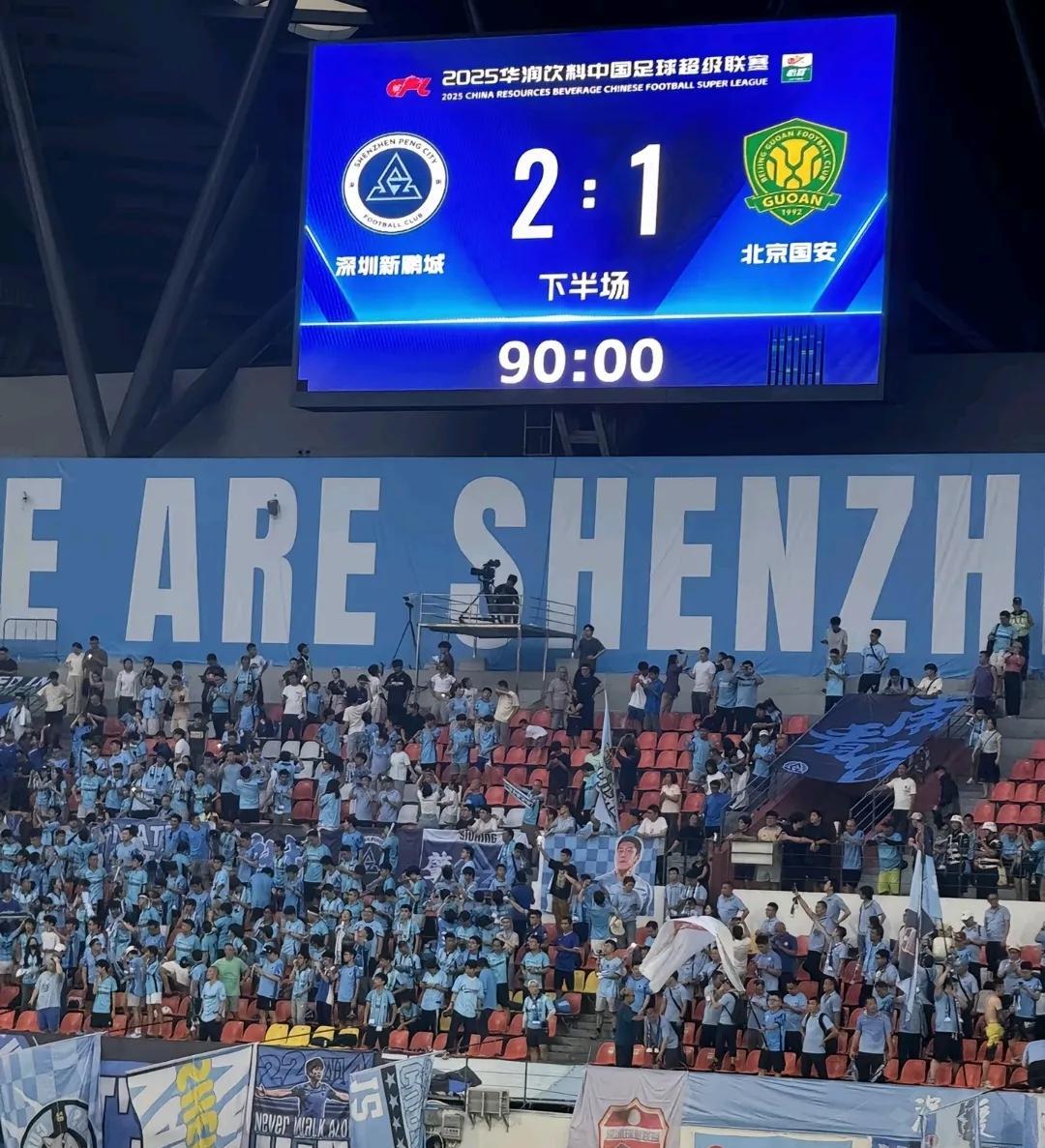 深圳新鹏程和球迷疯狂庆祝,深圳新鹏程2比1北京国安,陈涛一战成名,保级球队拿下国安老牌劲旅,陈涛用一战就证明了自己不比前2任外教差,陈涛首战指挥也比较沉稳,在场边也不急,也不大吼大叫,这点太难得了,看样子,陈涛在国足教练组这几年没有白呆,学到了很多东西,大赛见多了,执教中超球队也能轻松应对,恭喜陈涛拿下开门红,恭喜深圳新鹏程拿下3分,保级有戏。
