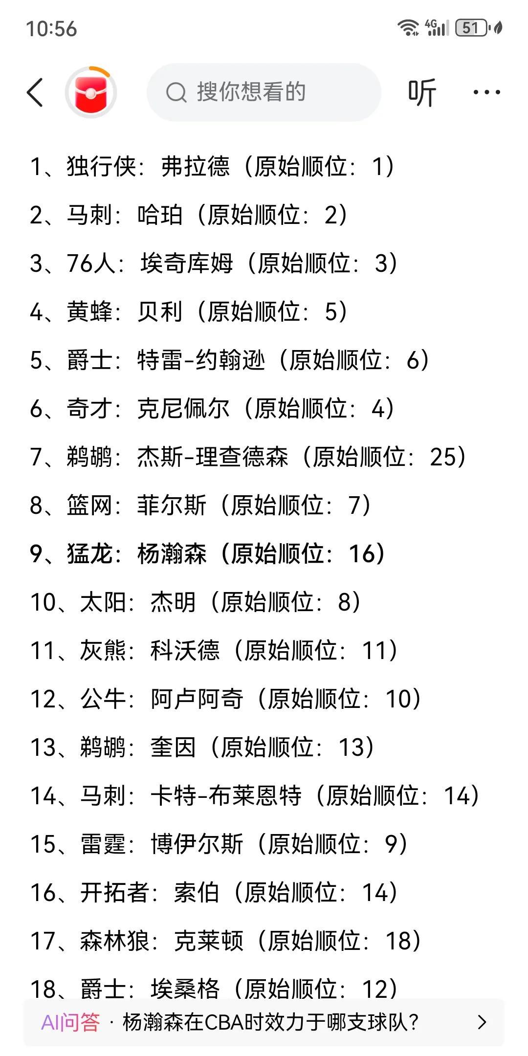 NBA季前赛后,美国媒体重排25年选秀顺位:杨瀚森排在第9顺位 ,从16位上升了7位,杨瀚森已经相当不错了,虽然季前赛最后一场表现差,只得到3分0篮板,但是杨瀚森所展现出来的潜力依然让美媒期待,如果不是第4场比赛差强人意,杨瀚森排名还要更高。 美媒表示:“杨瀚森才20岁,对于这样一位七尺长人来说,他所展现的谦逊态度和出色球商,已经足够让人充满期待了。” 新秀NBA的路很漫长,对于杨瀚森来说,有惊喜也有不足,这对于新秀来说是正常的,常规赛会更难,这就需要杨瀚森自己去努力克服了,必须用汗水和行动去实想梦想,相信小杨一定不会让大家失望的,杨瀚森加油!