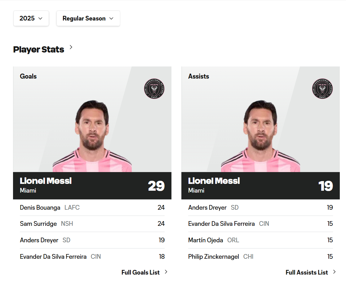 官方:梅西以29球加冕2025赛季美职联射手王!