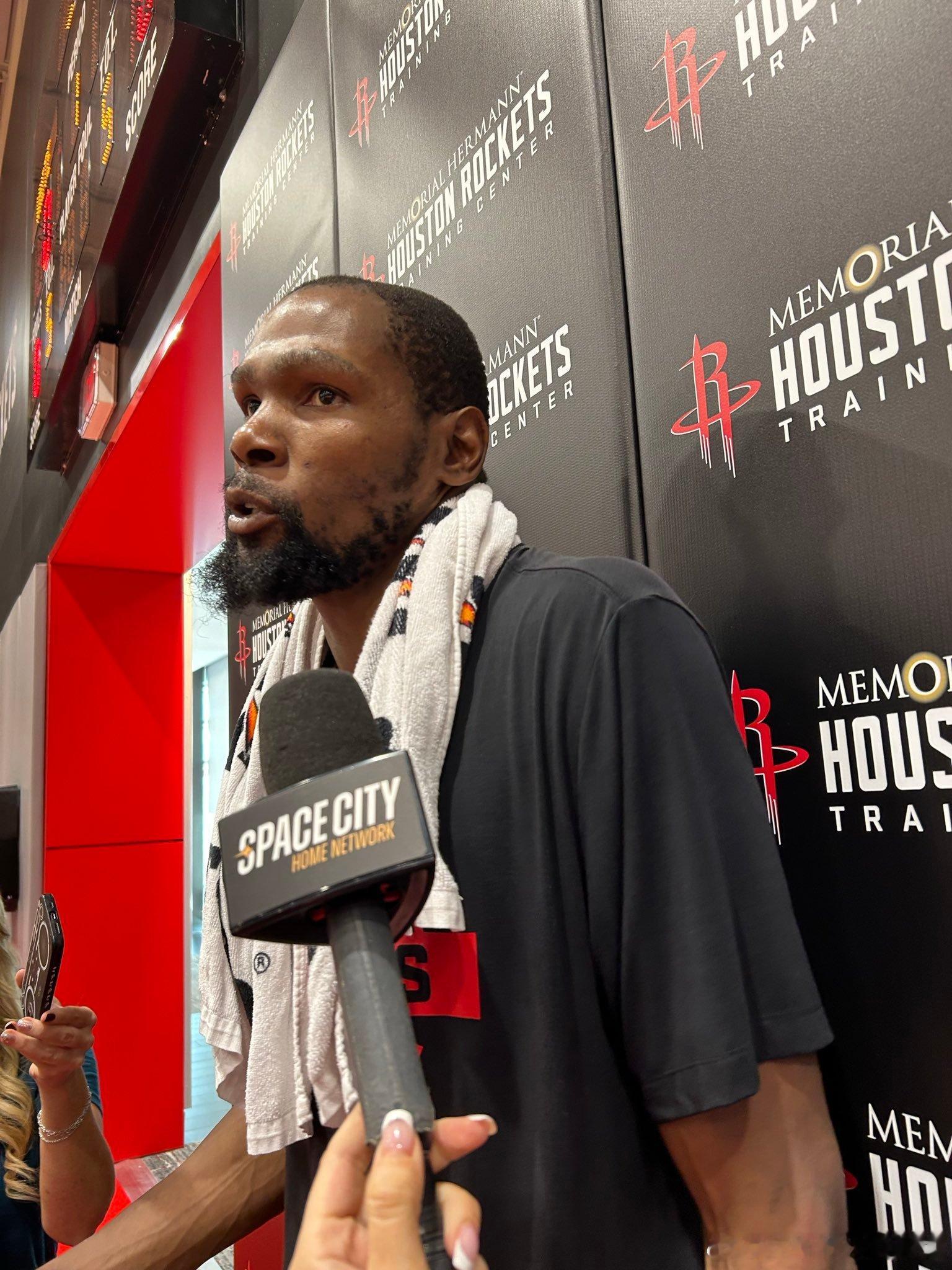 杜兰特谈到火箭队的进攻:“我认为这是一个持续磨合的过程。当球员们真正理解了该如何应对每一场比赛后,他们会打得更从容……在此期间,我们要做的就是团结协作、保持沟通、相互支撑。”休斯顿火箭