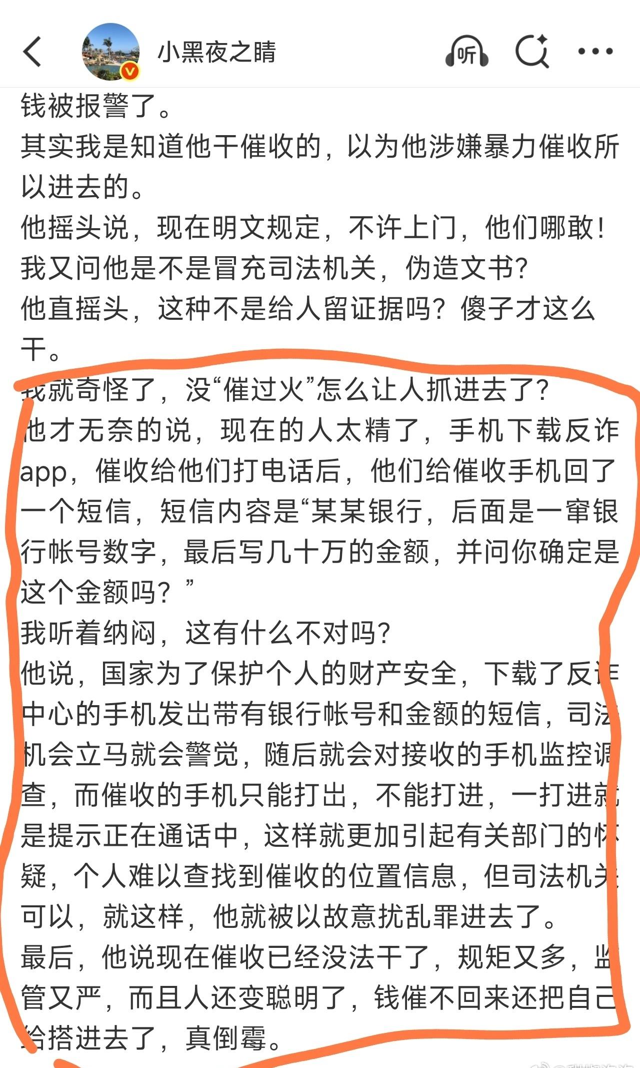 看到这个催收人员进去的事,我把为什么进去的原因求证了元宝,元宝说这是个故事 经常有借款人不还钱,催收人员打电话给我的情况。我直接无视,催收工作确实越来越难干了!
